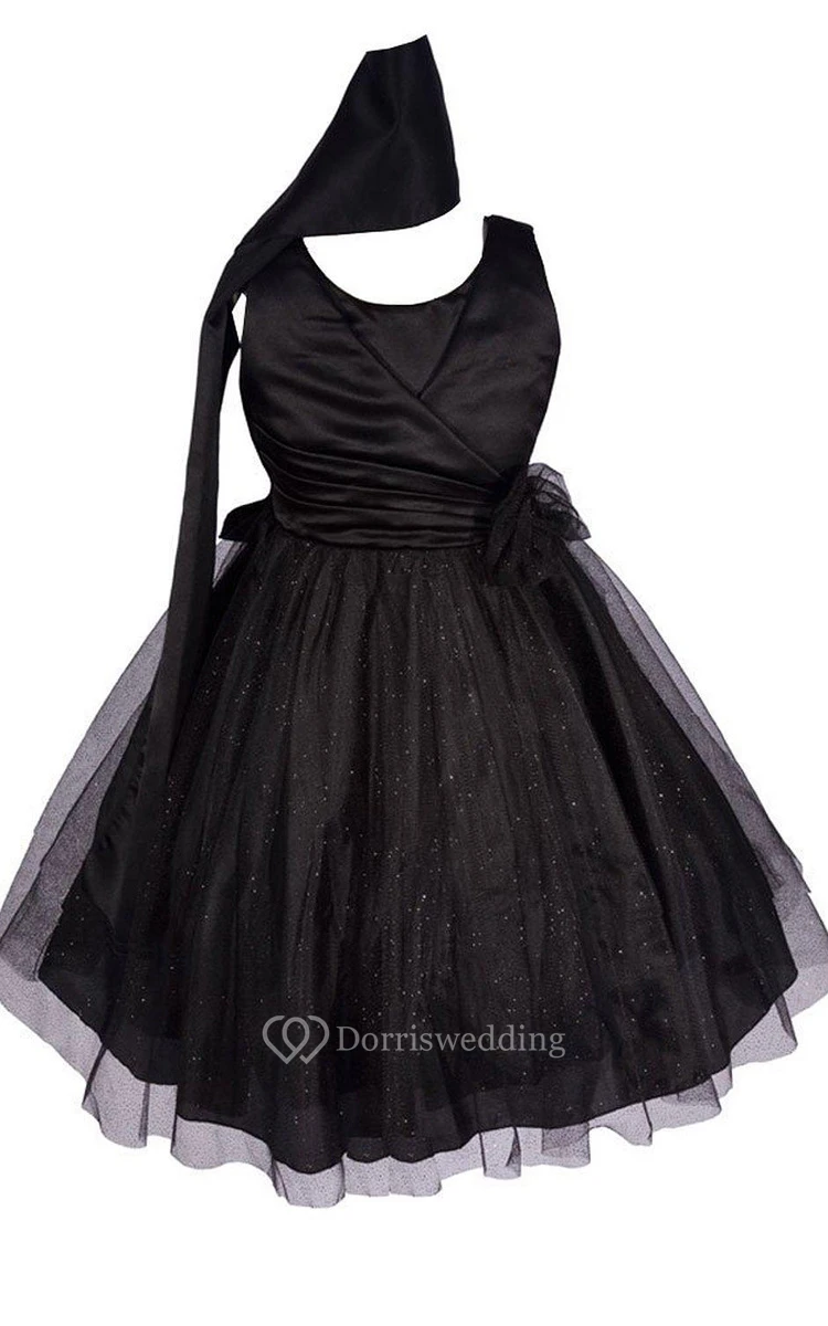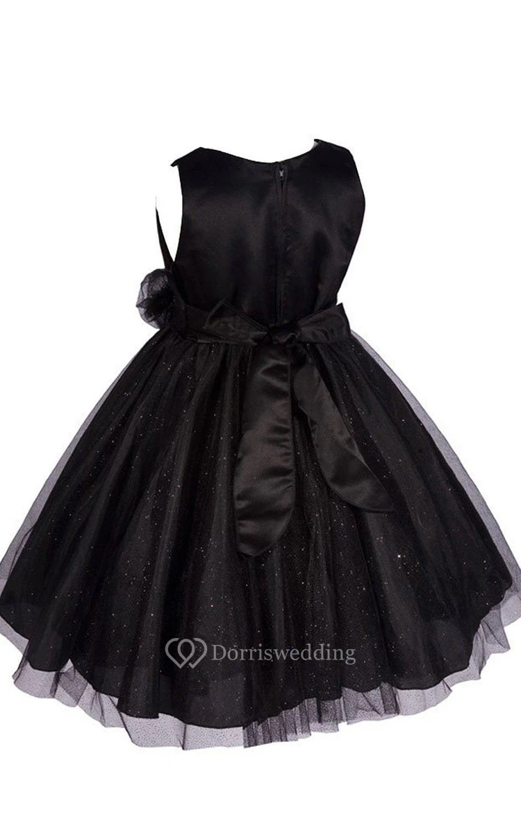 Sleeveless A-line Tulle Dress With Pleats and Flower