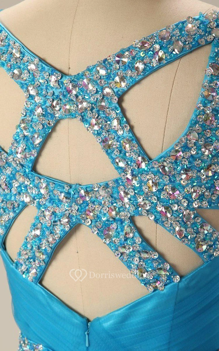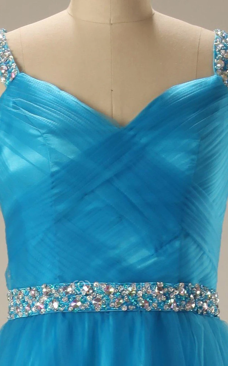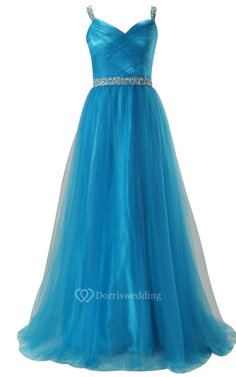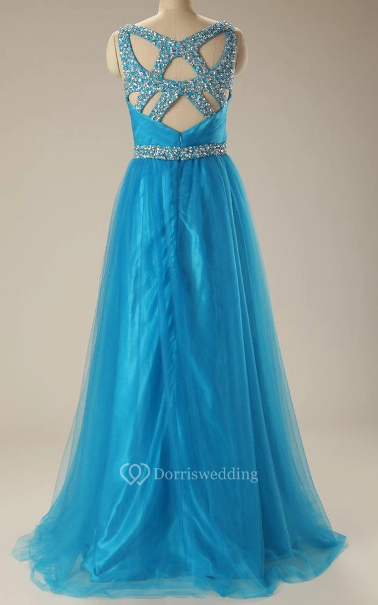 Sleeveless A-line Tulle Gown With Sequined Waistline