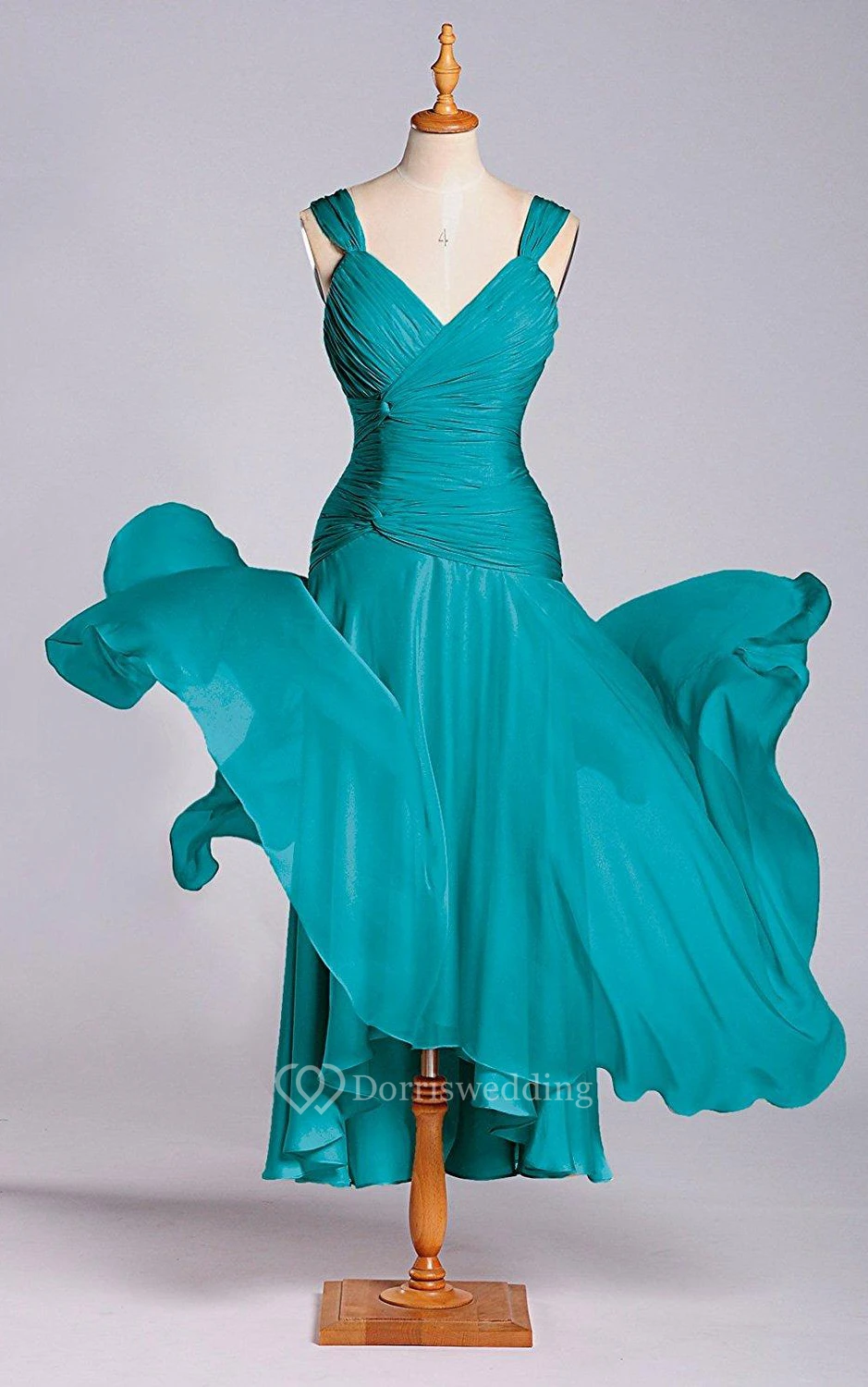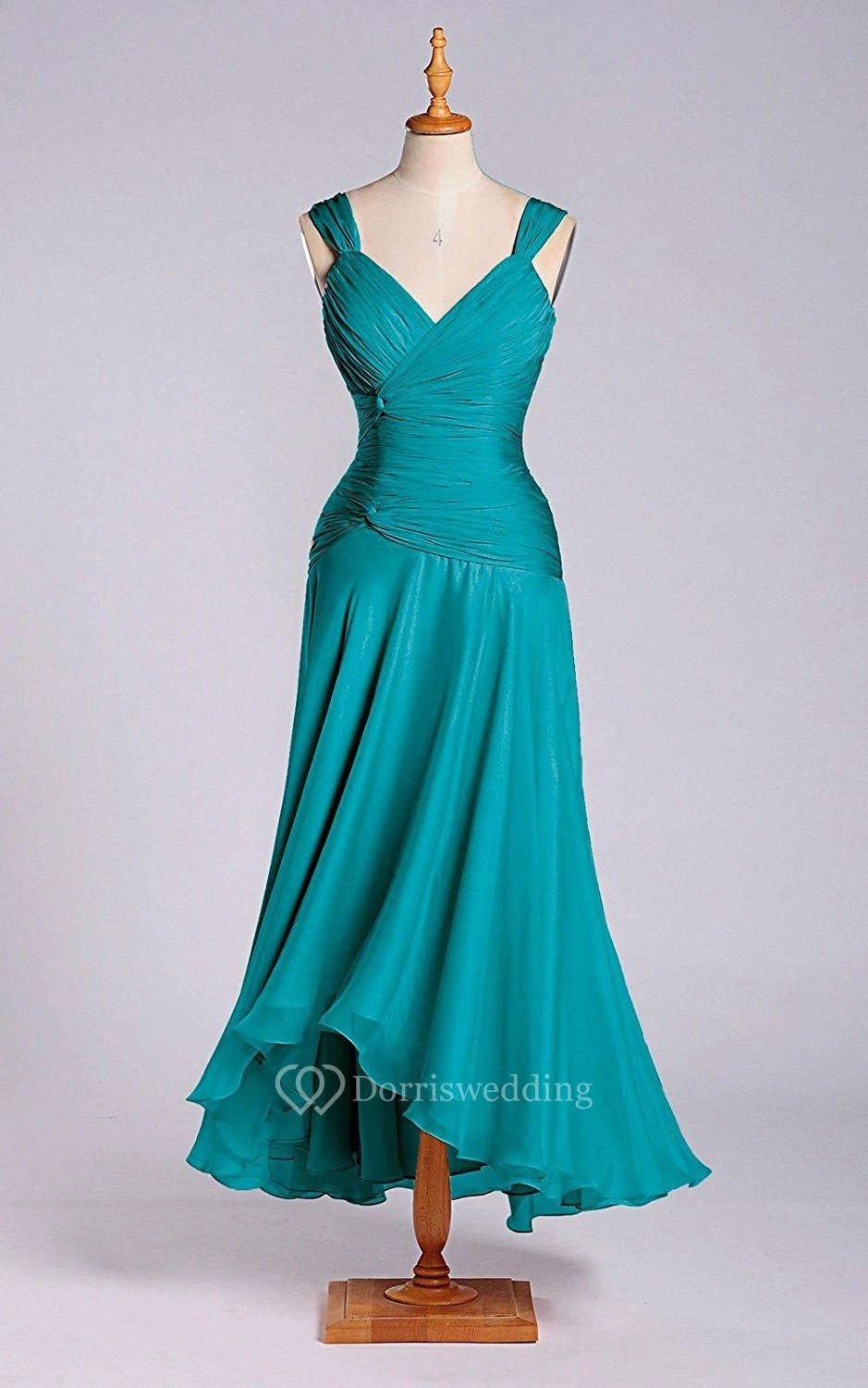 Sleeveless A-line V-neck Chiffon Dress with Dropped Waistline