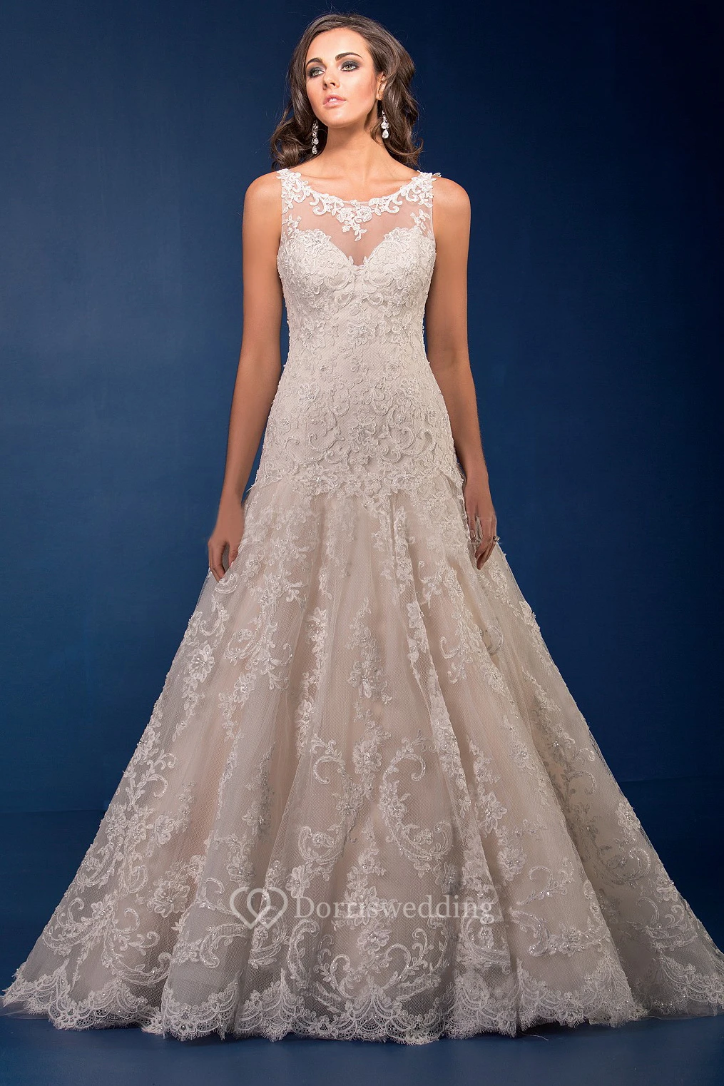 Sleeveless A-Line Wedding Dress With Bateau-Neck And Appliques