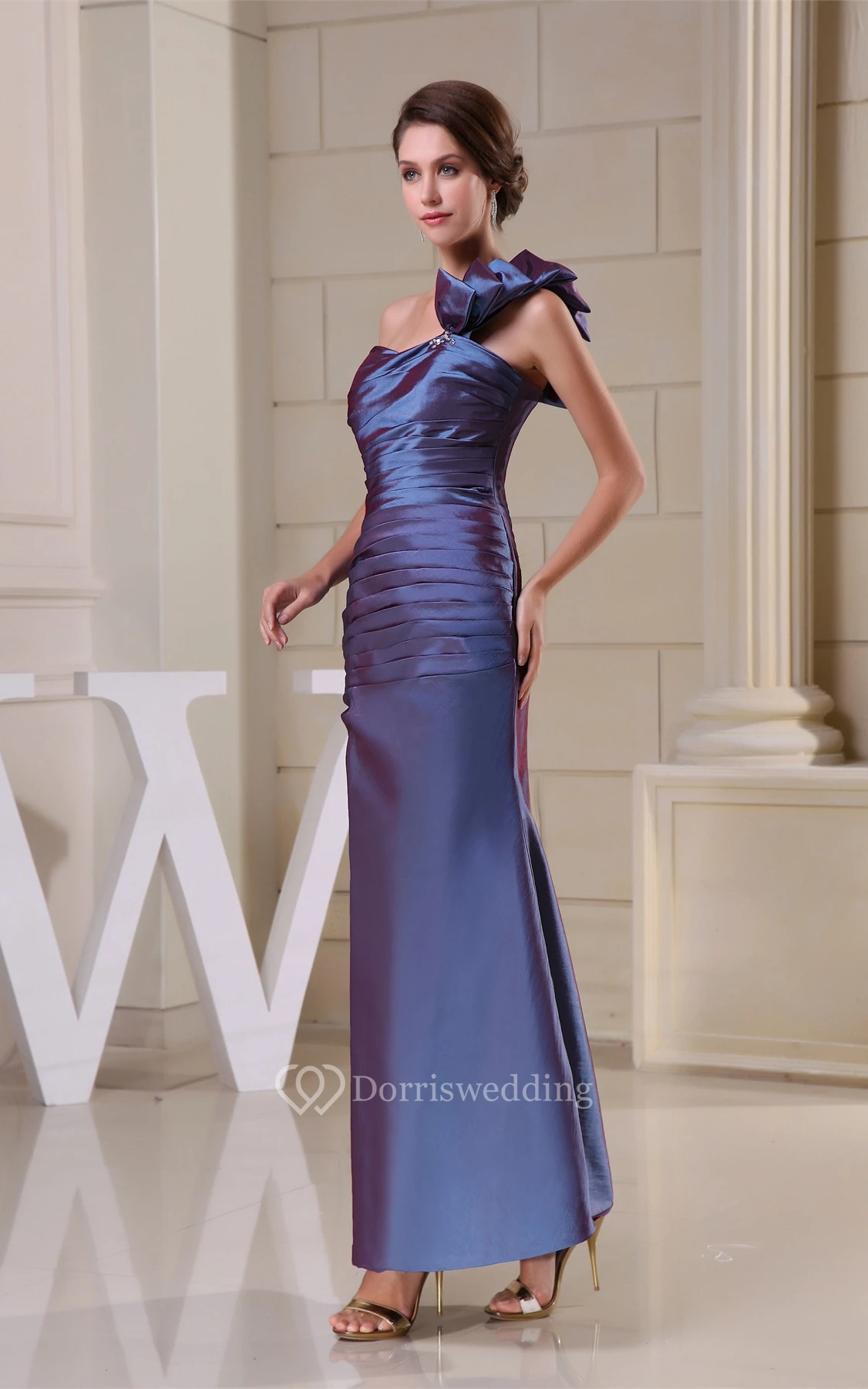 Sleeveless Ankle-Length Satin Single Strap and Dress With Ruching