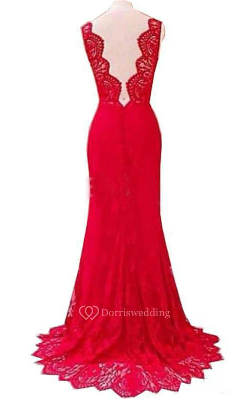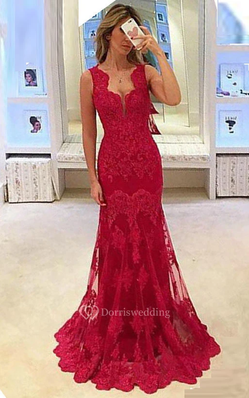 Sleeveless Appliques Lace Long Mermaid Dress