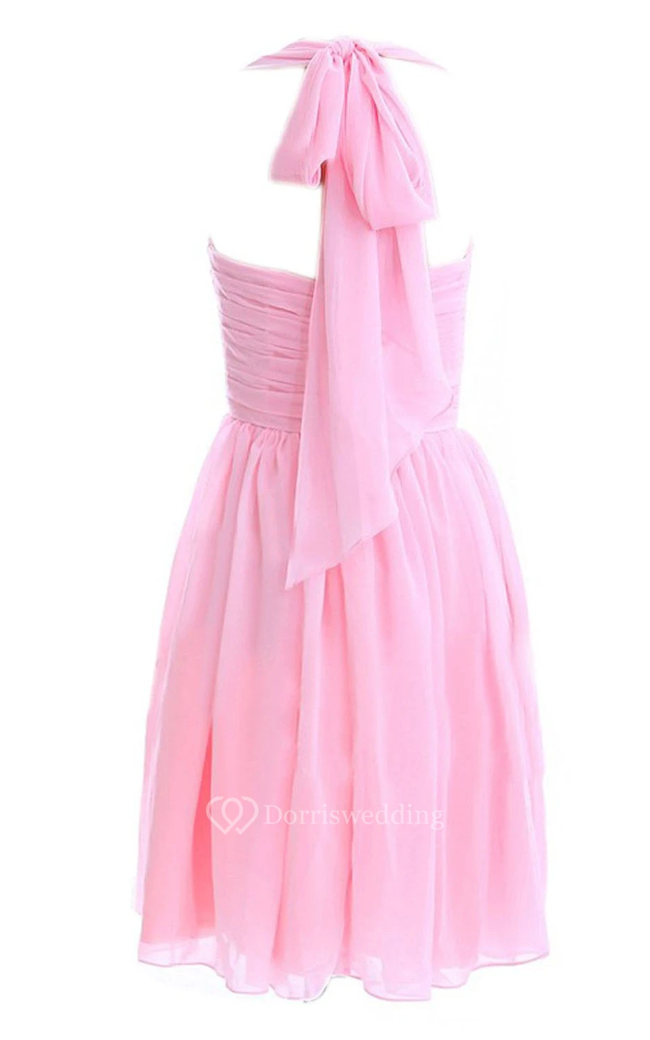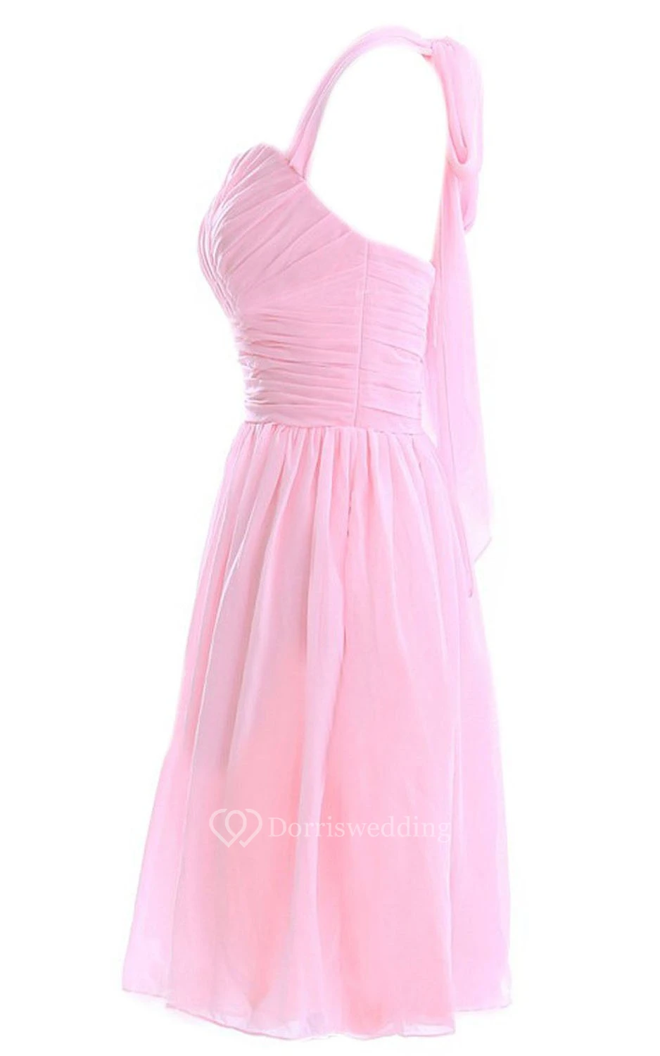 Sleeveless Asymmetrical Bodice Knee-length Pleated Chiffon Dress