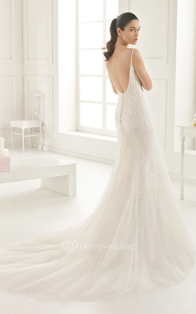 Sleeveless Backless Organza Dress With Appliques