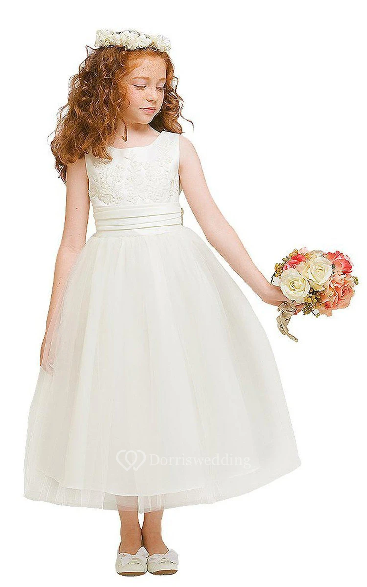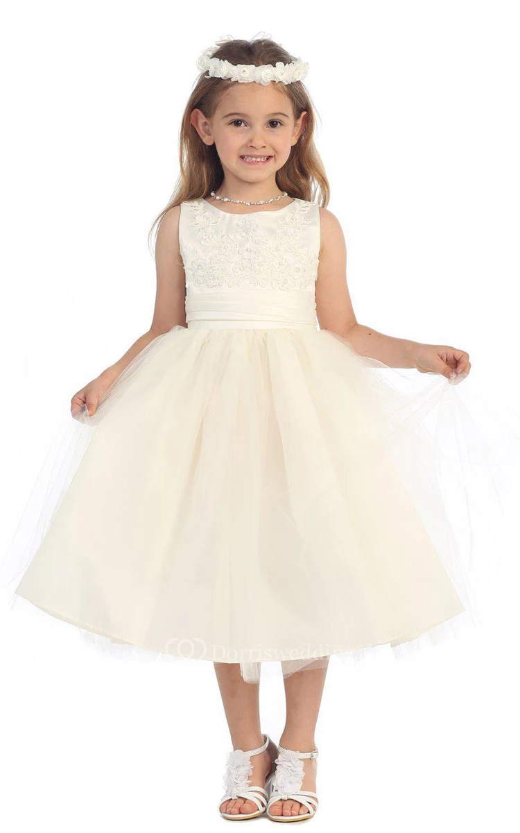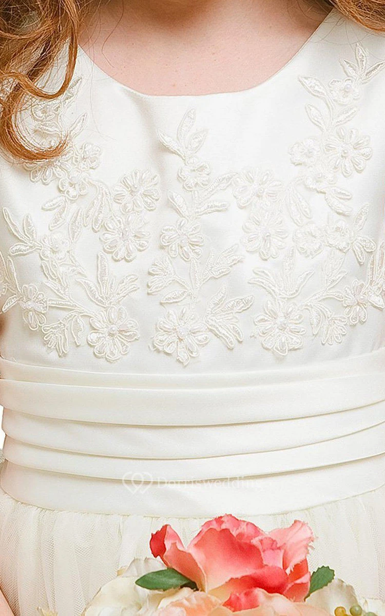 Sleeveless Bateau-neck A-line Dress With Appliques
