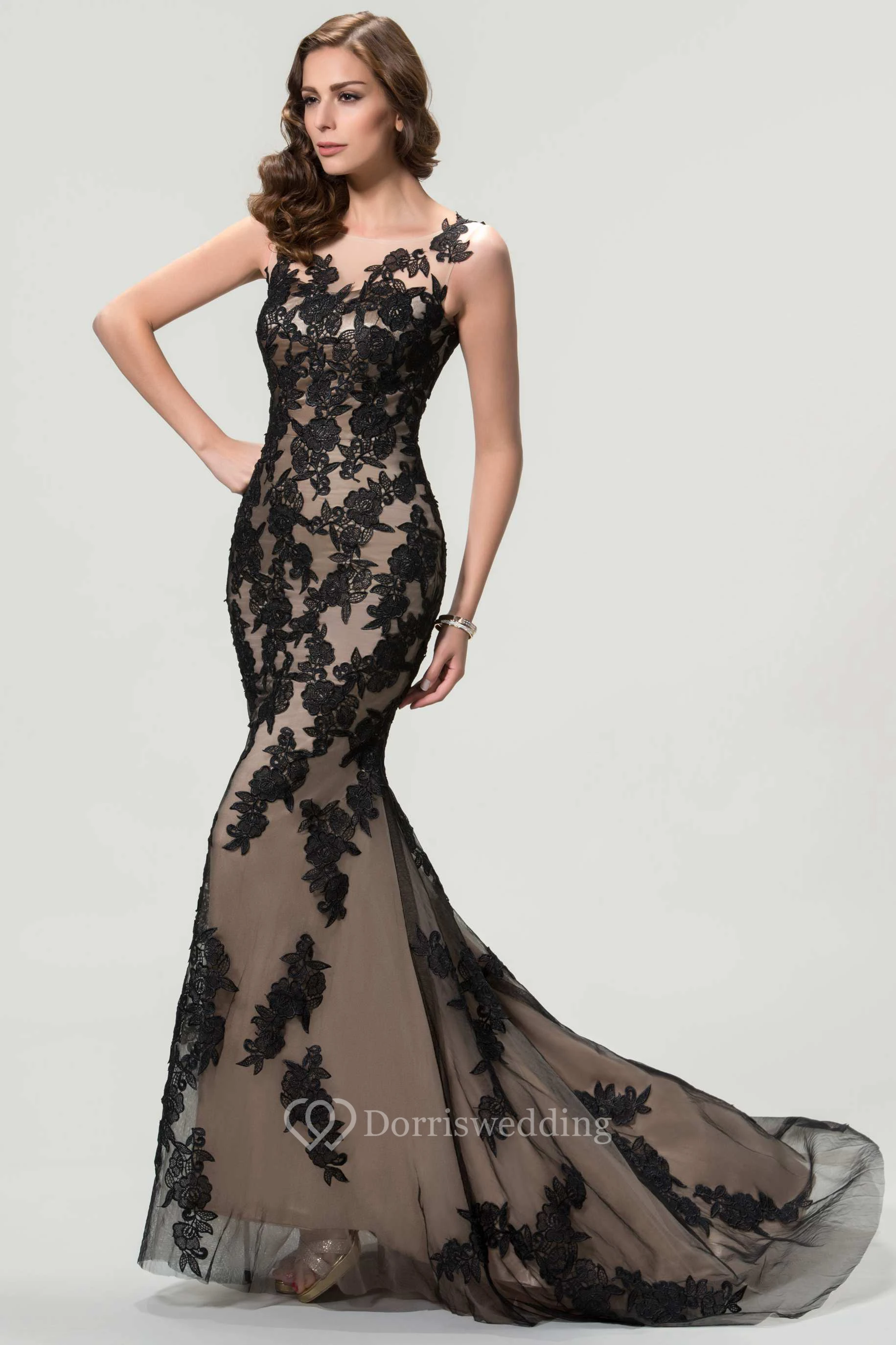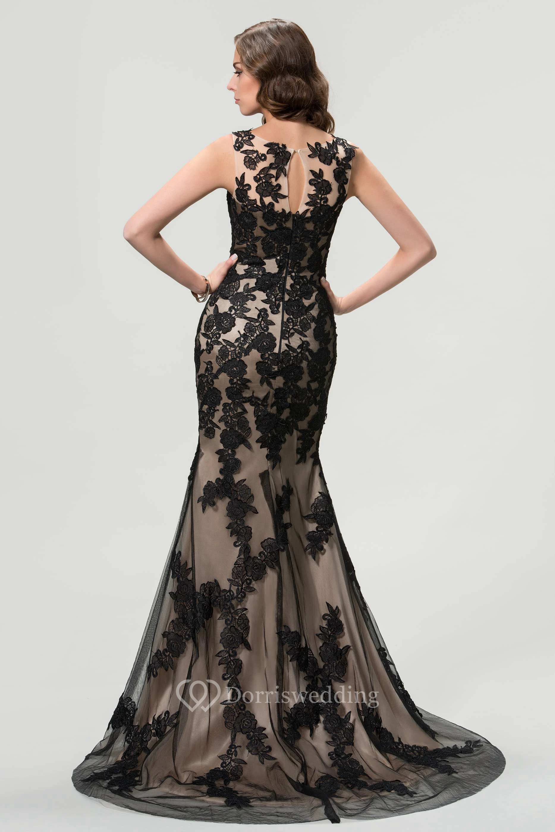 Sleeveless Bateau Neck Mermaid Long Lace Dress