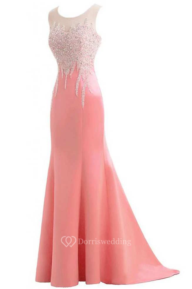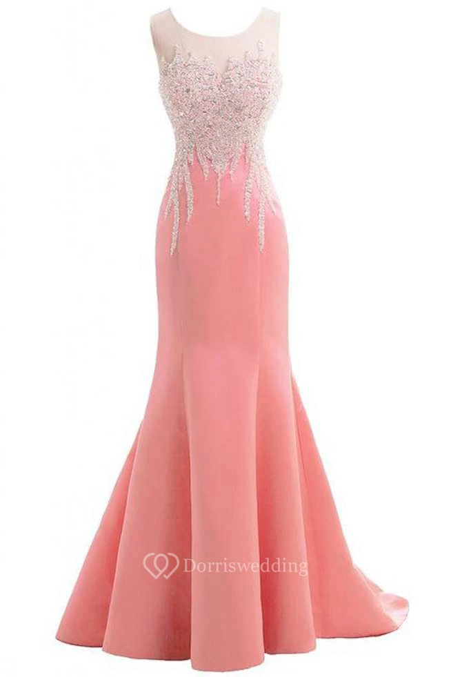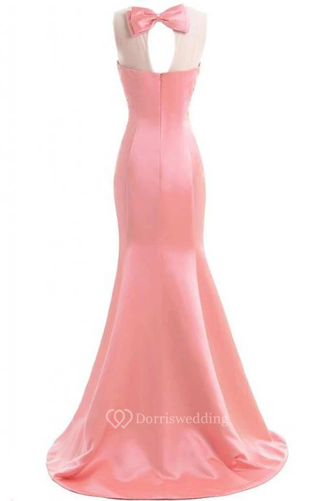 Sleeveless Beaded Bodice Mermaid Long Satin Dress With Bow