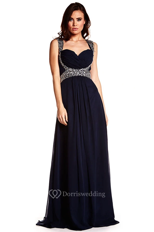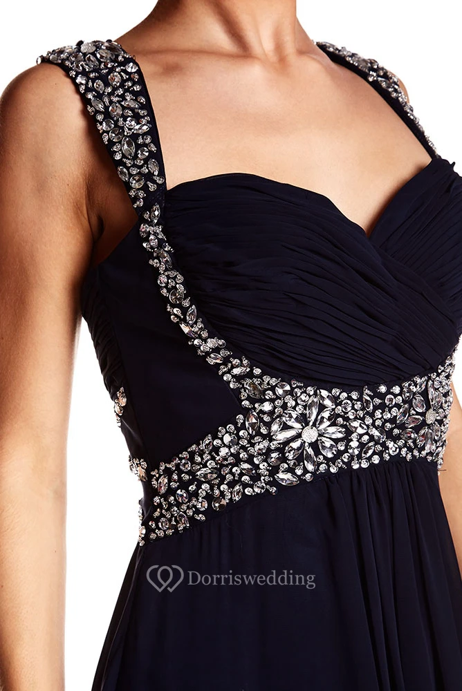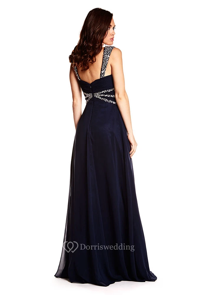 Sleeveless Beaded Strapped Chiffon Prom Dress With Criss Cross
