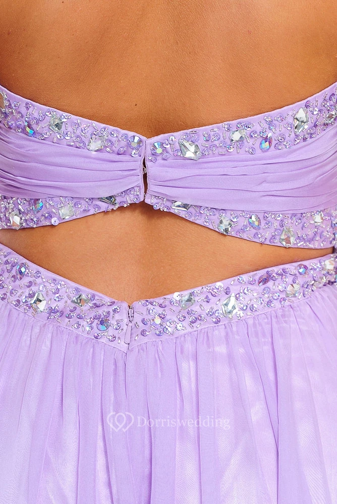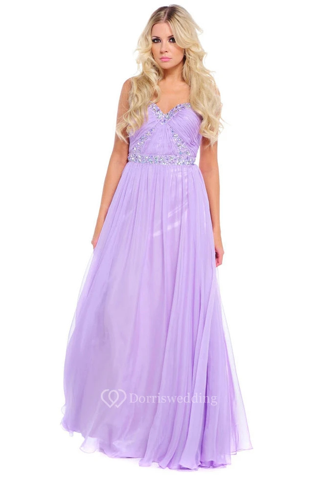 Sleeveless Beaded Sweetheart Chiffon Prom Dress
