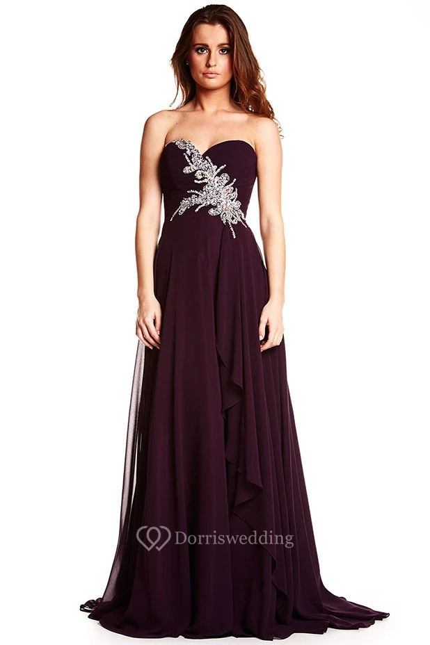 Sleeveless Beaded Sweetheart Chiffon Prom Dress