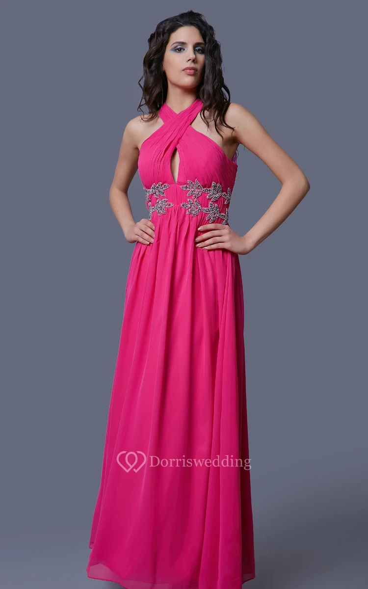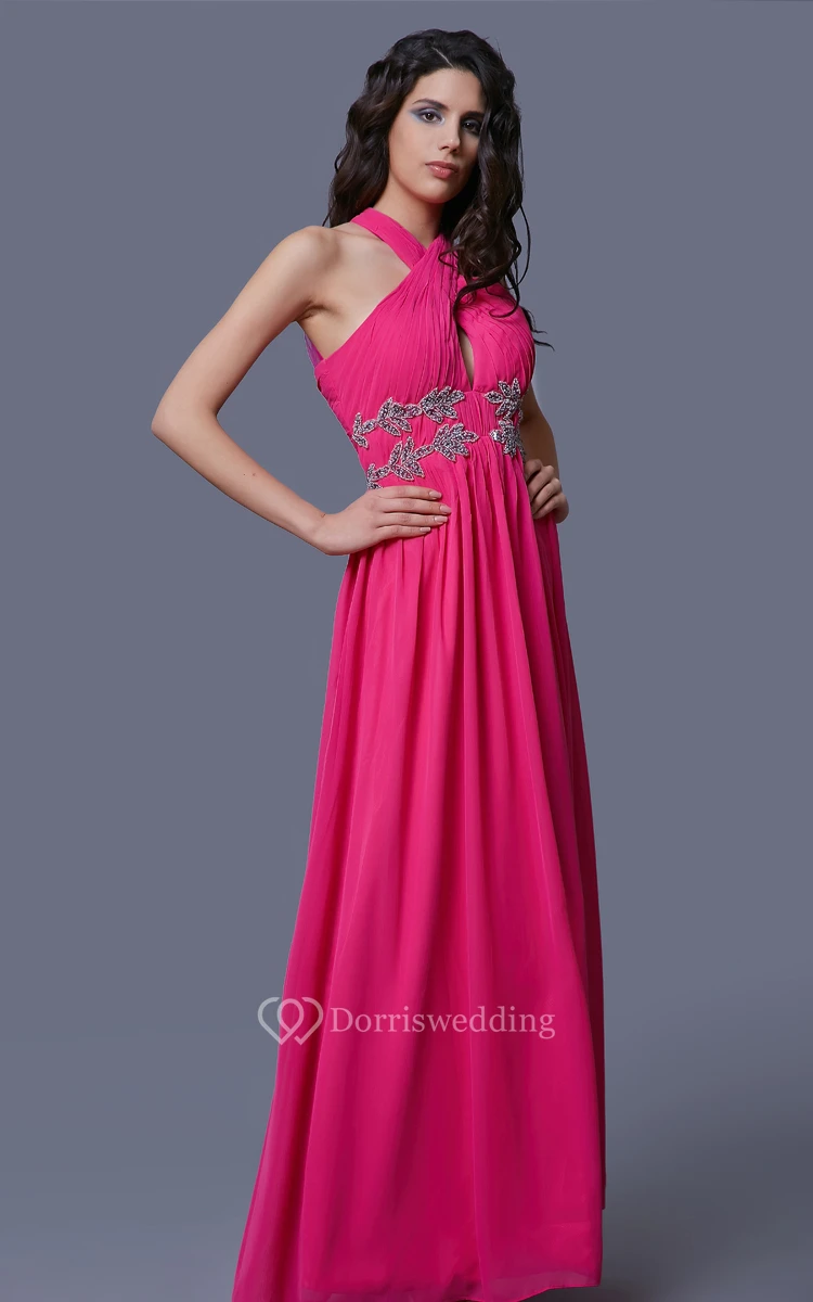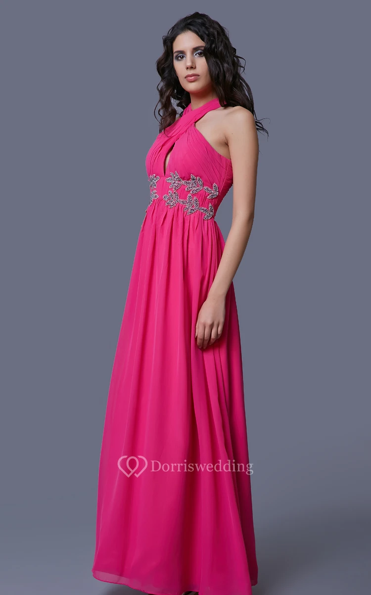 Sleeveless Chiffon A-Line Dress With Beaded Appliques and Illusion Back