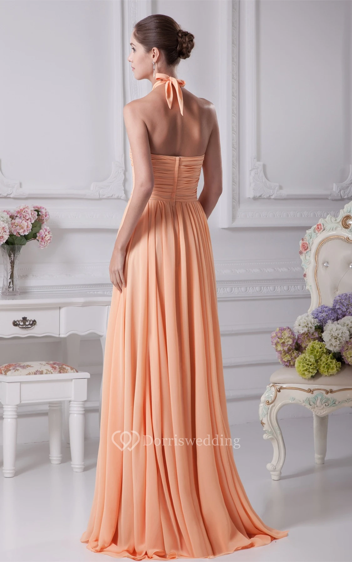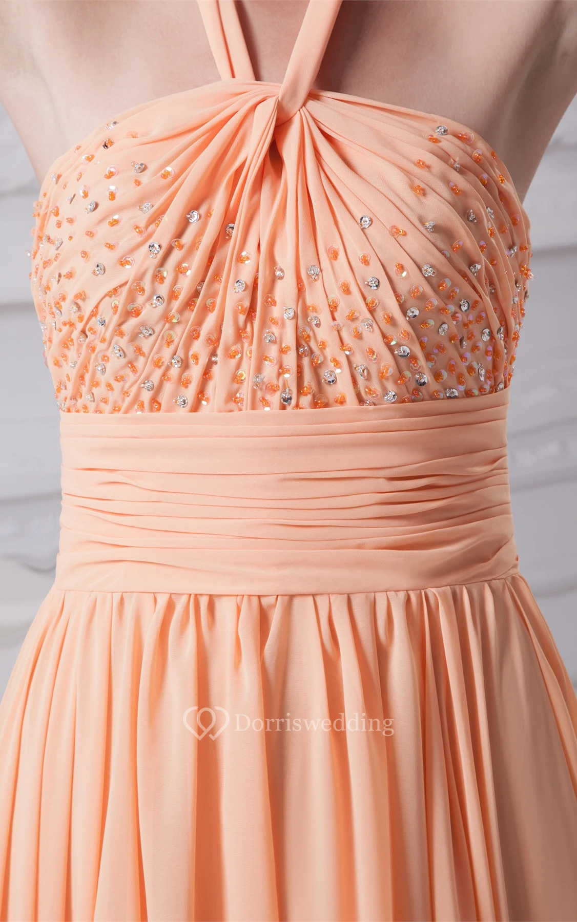 Sleeveless Chiffon A-Line Ruched Jeweled Top and Gown With Halter