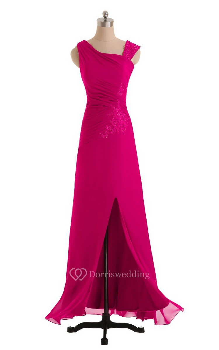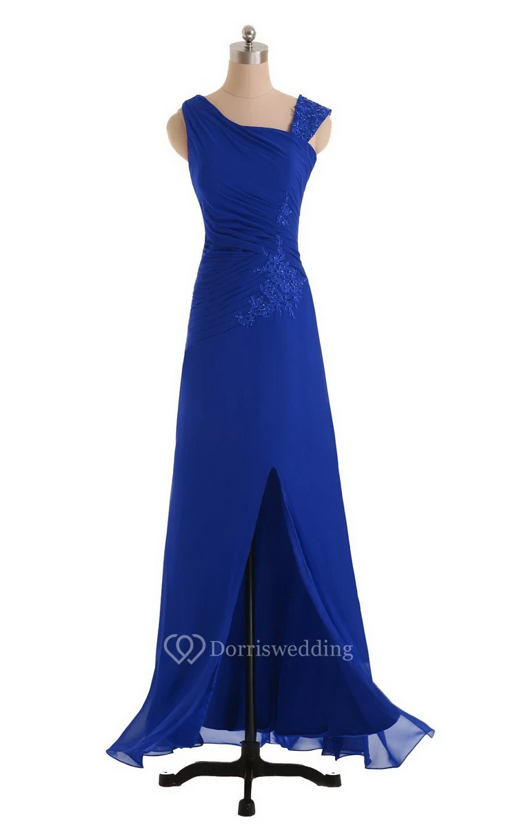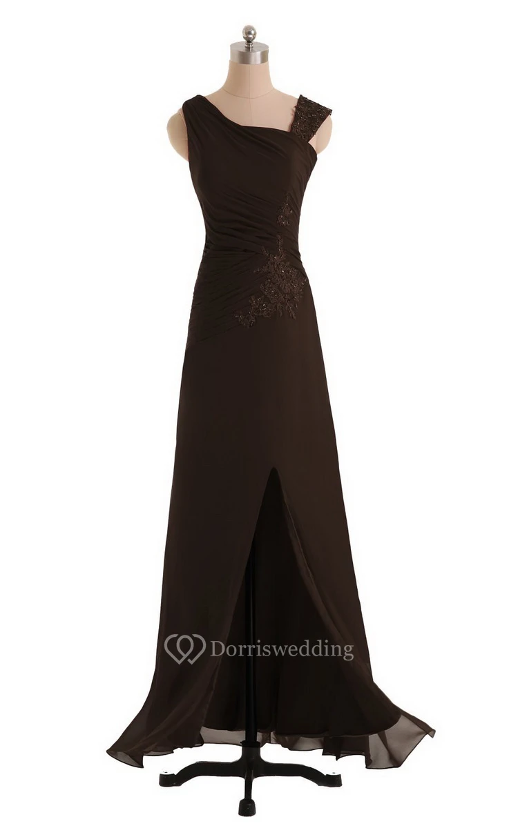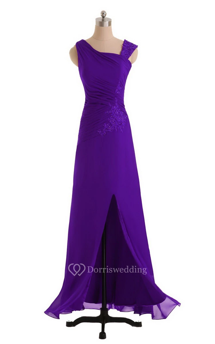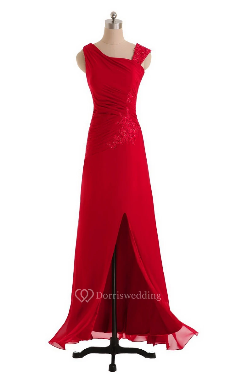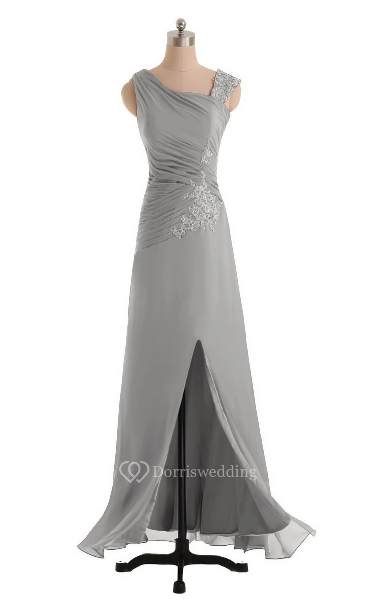 Sleeveless Chiffon Dress With Front Slit and Ruching