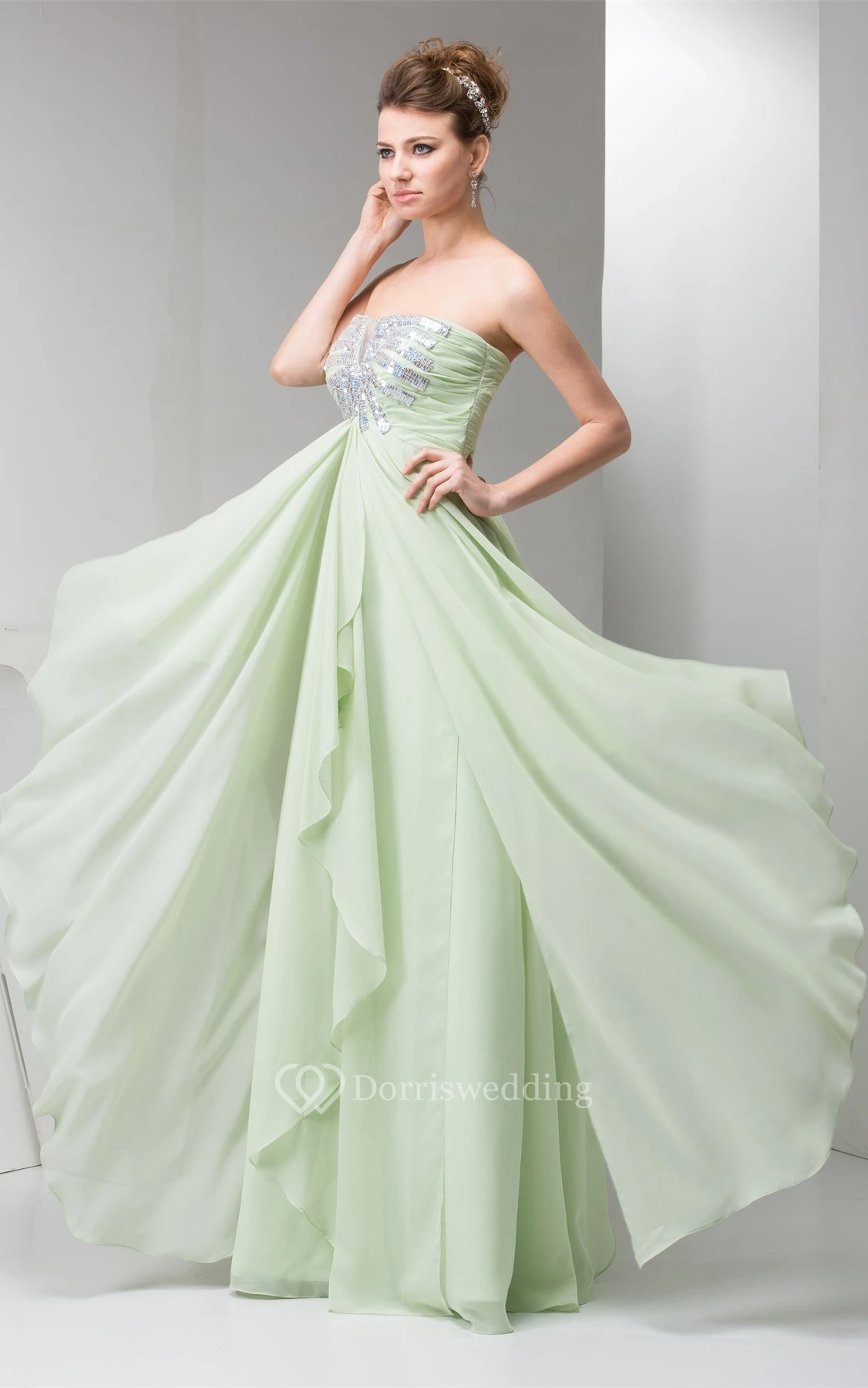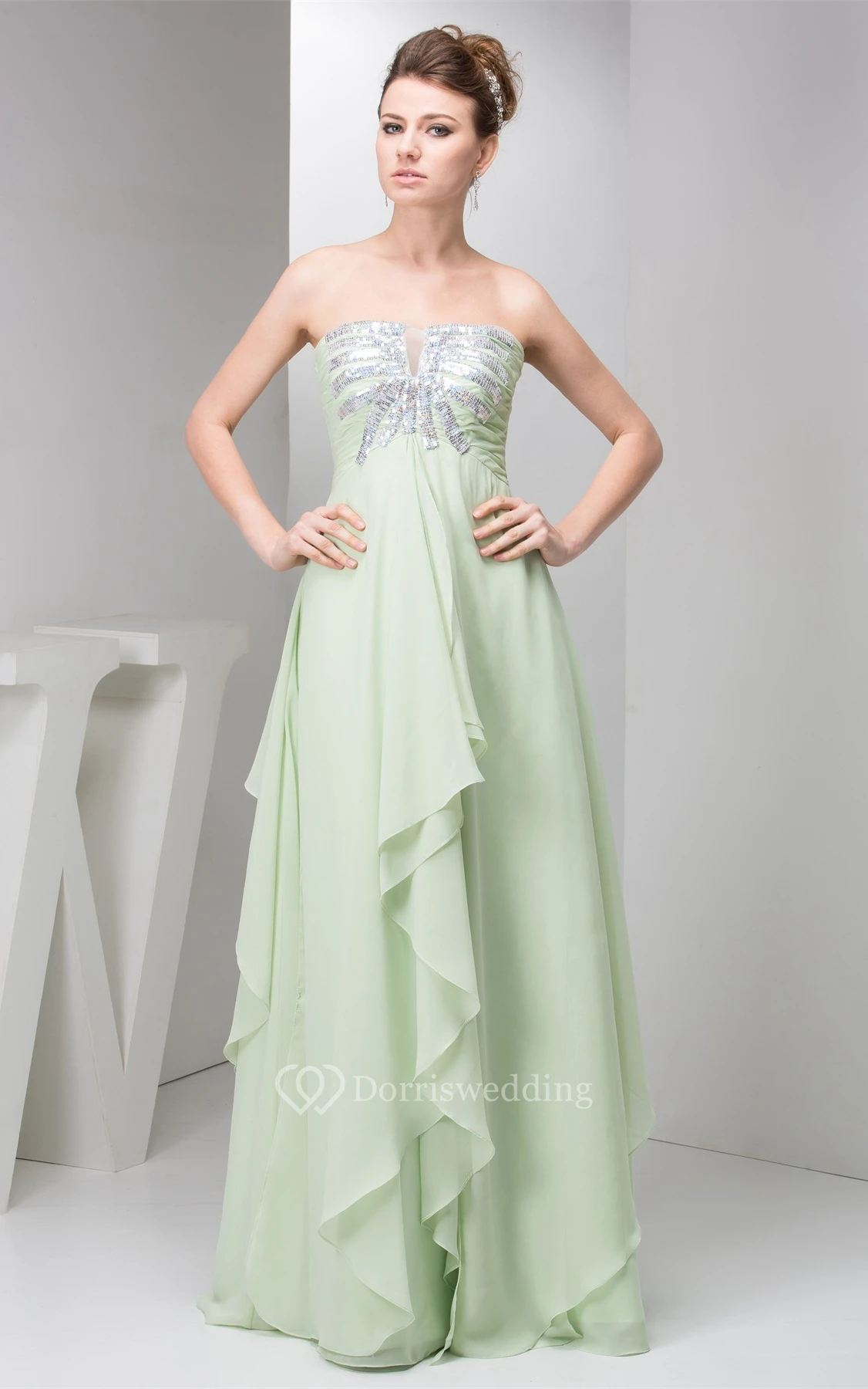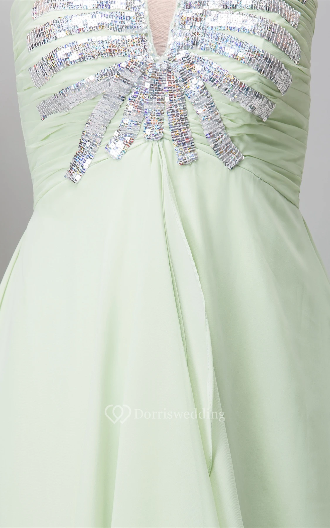 Sleeveless Chiffon Floor-Length Empire Sequined Top and Dress With Draping