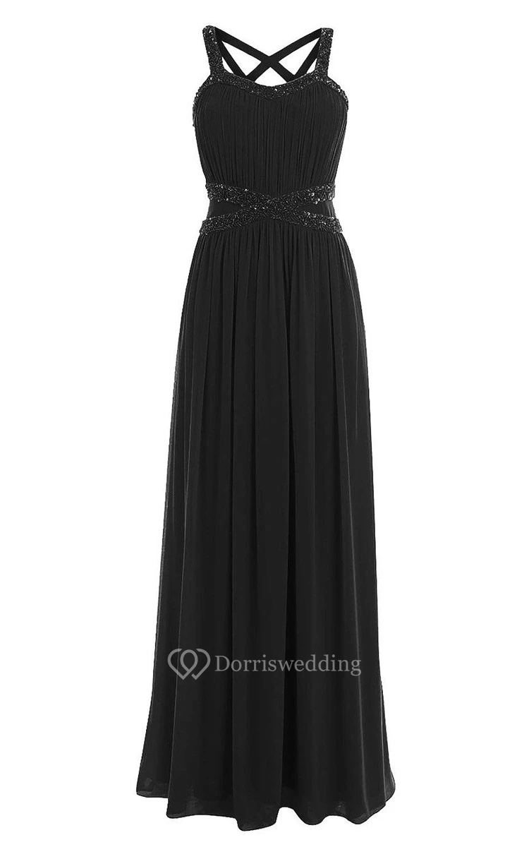 Sleeveless Chiffon Gown With Straps Back