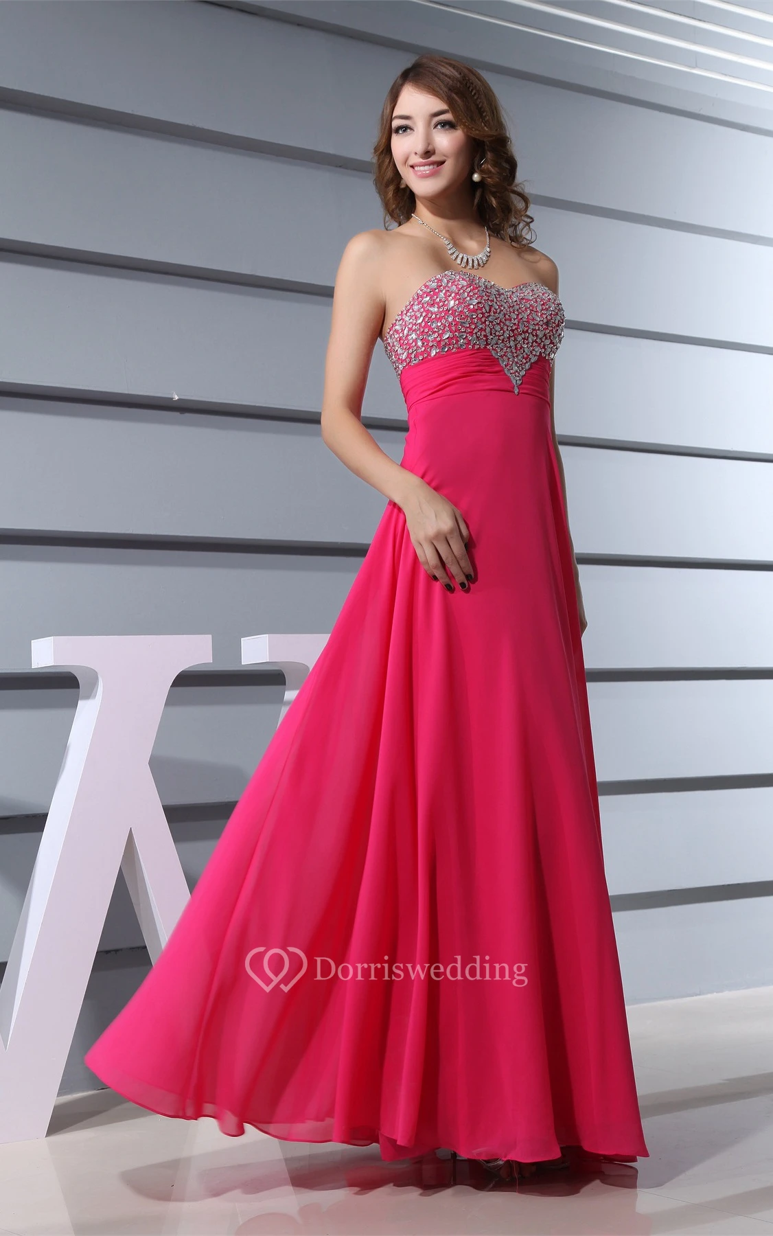 Sleeveless Chiffon Long Pleated Dress With Jeweled Top