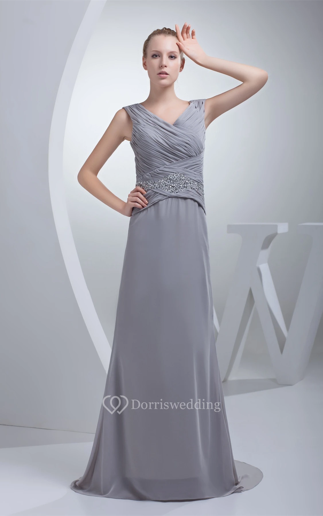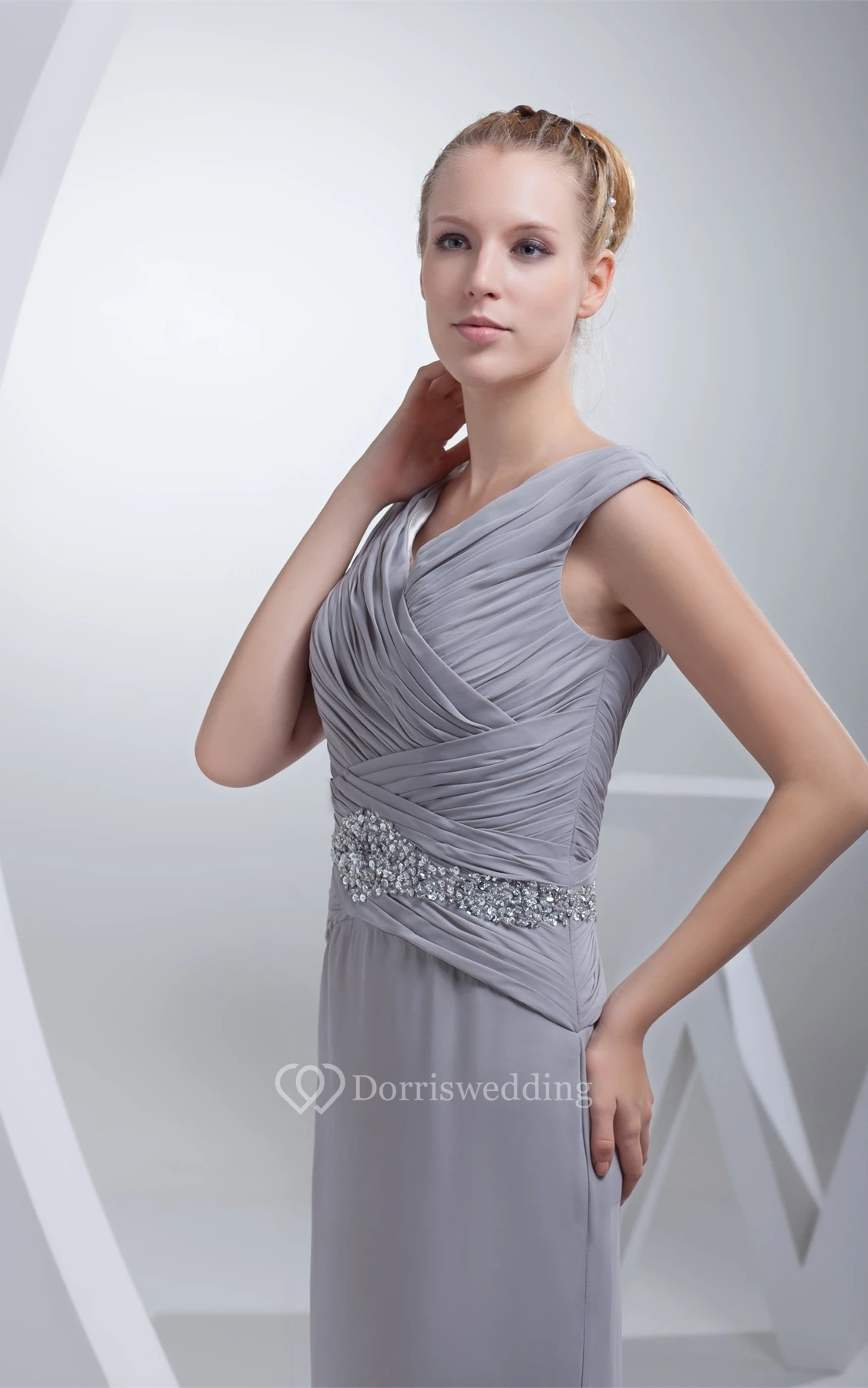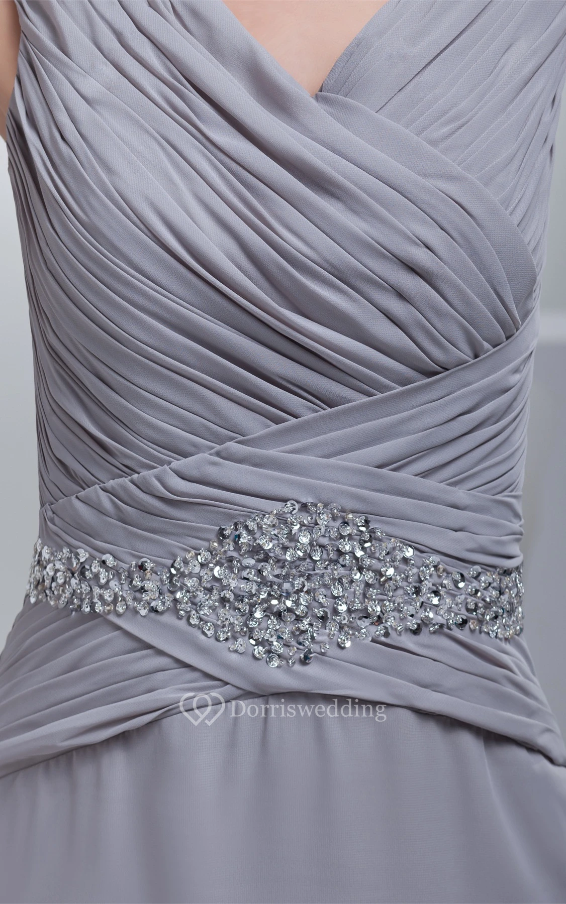 Sleeveless Chiffon Maxi Criss-Cross Dress With Jeweled Waist