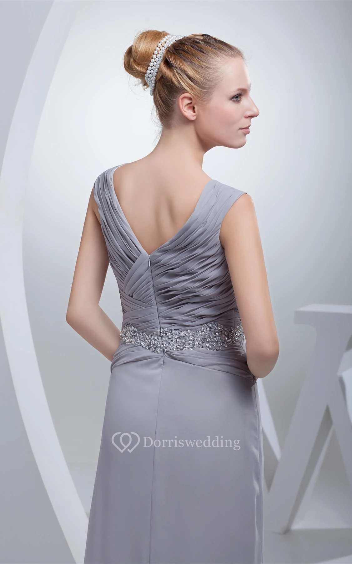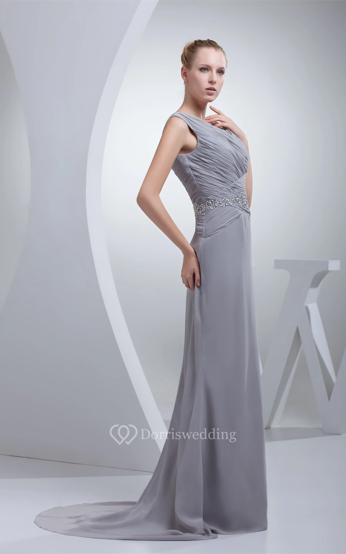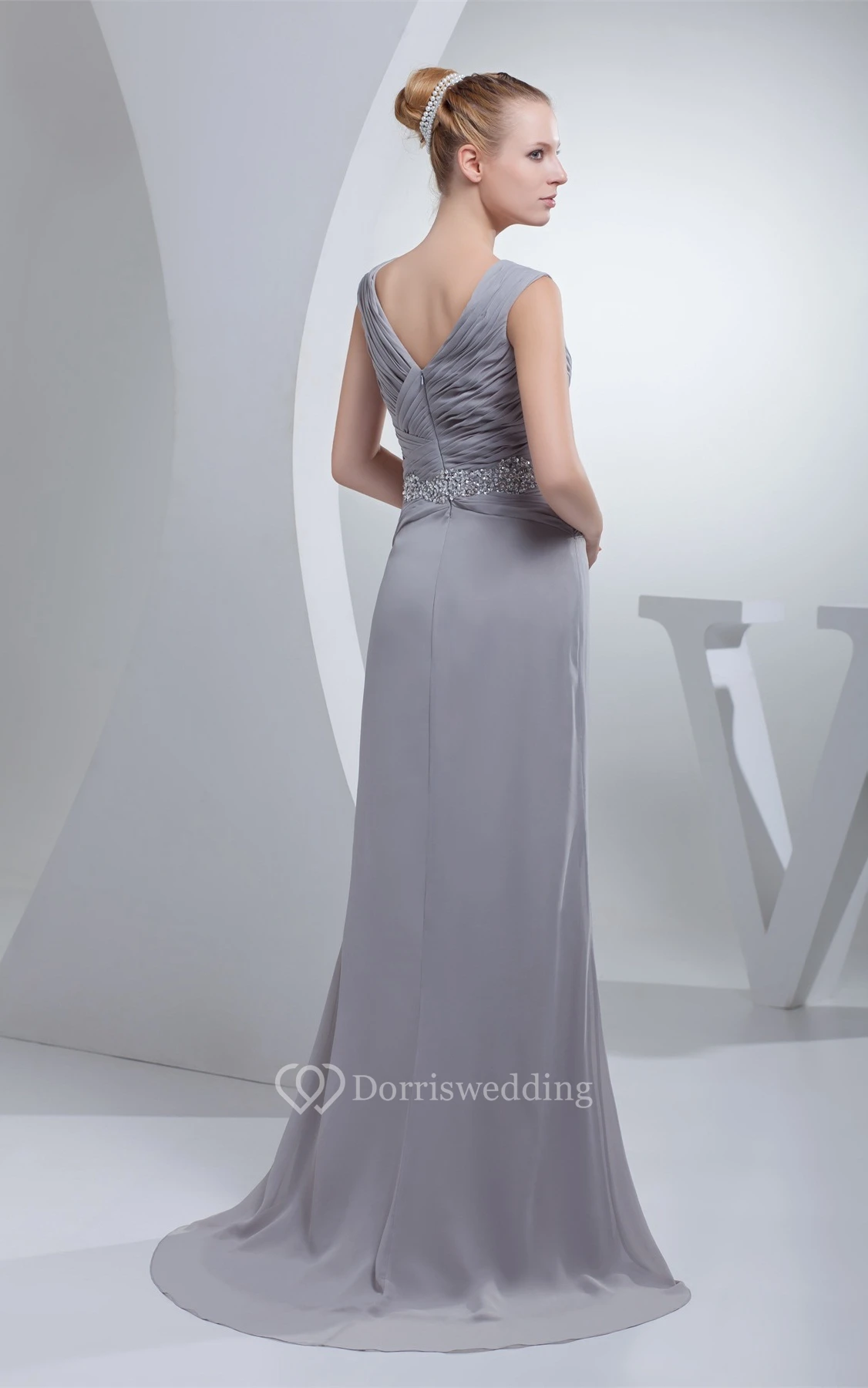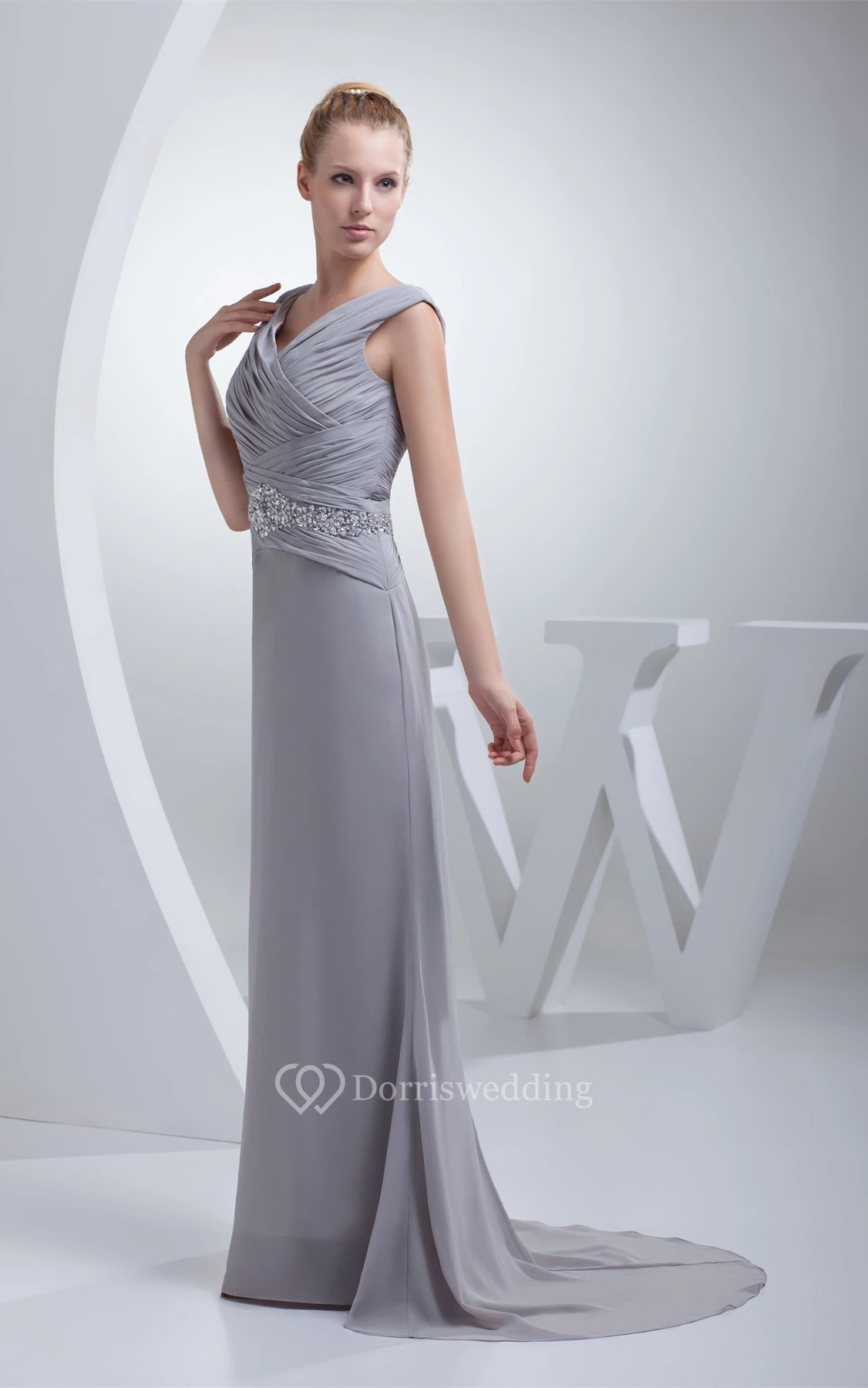 Sleeveless Chiffon Maxi Criss-Cross Dress With Jeweled Waist