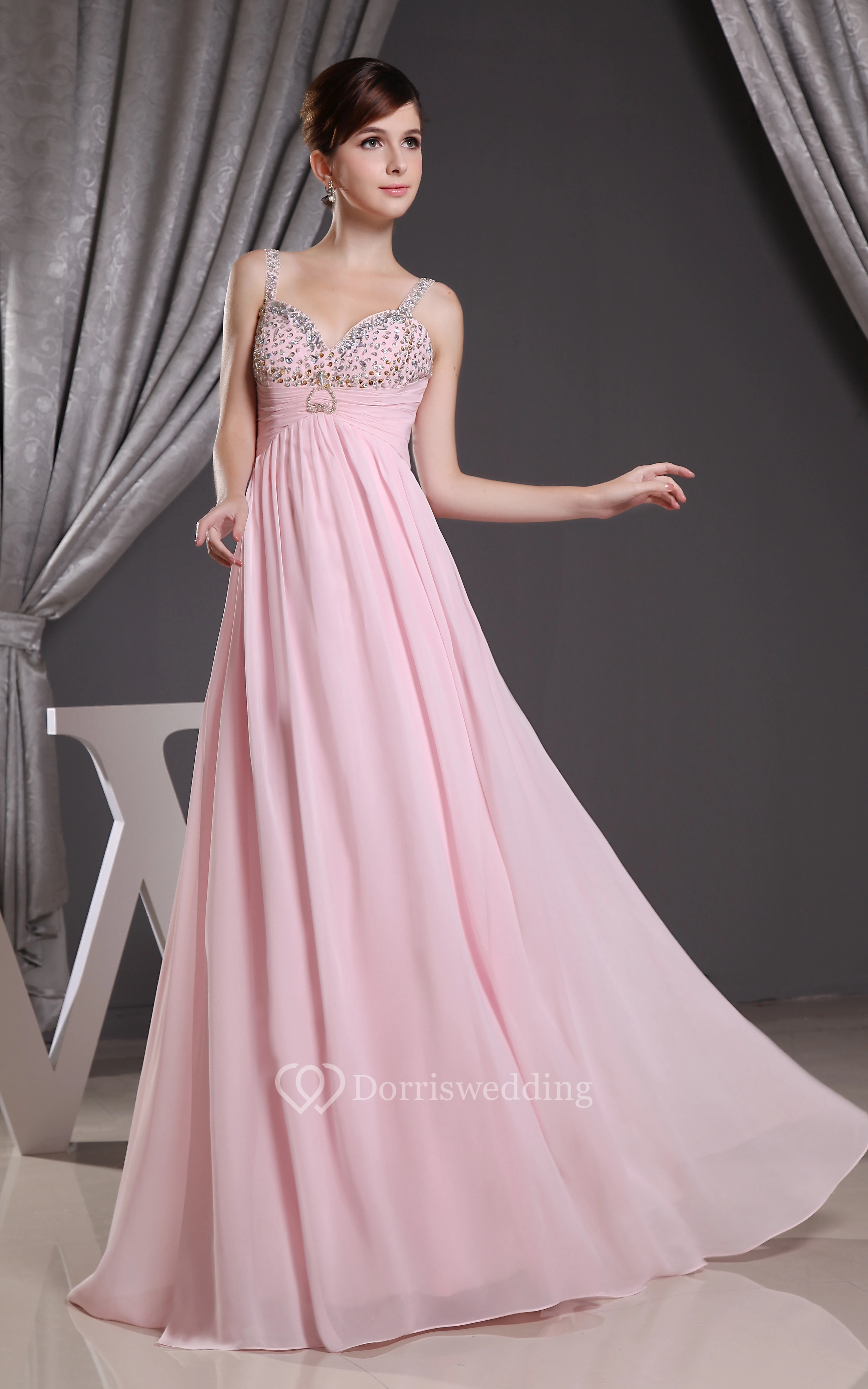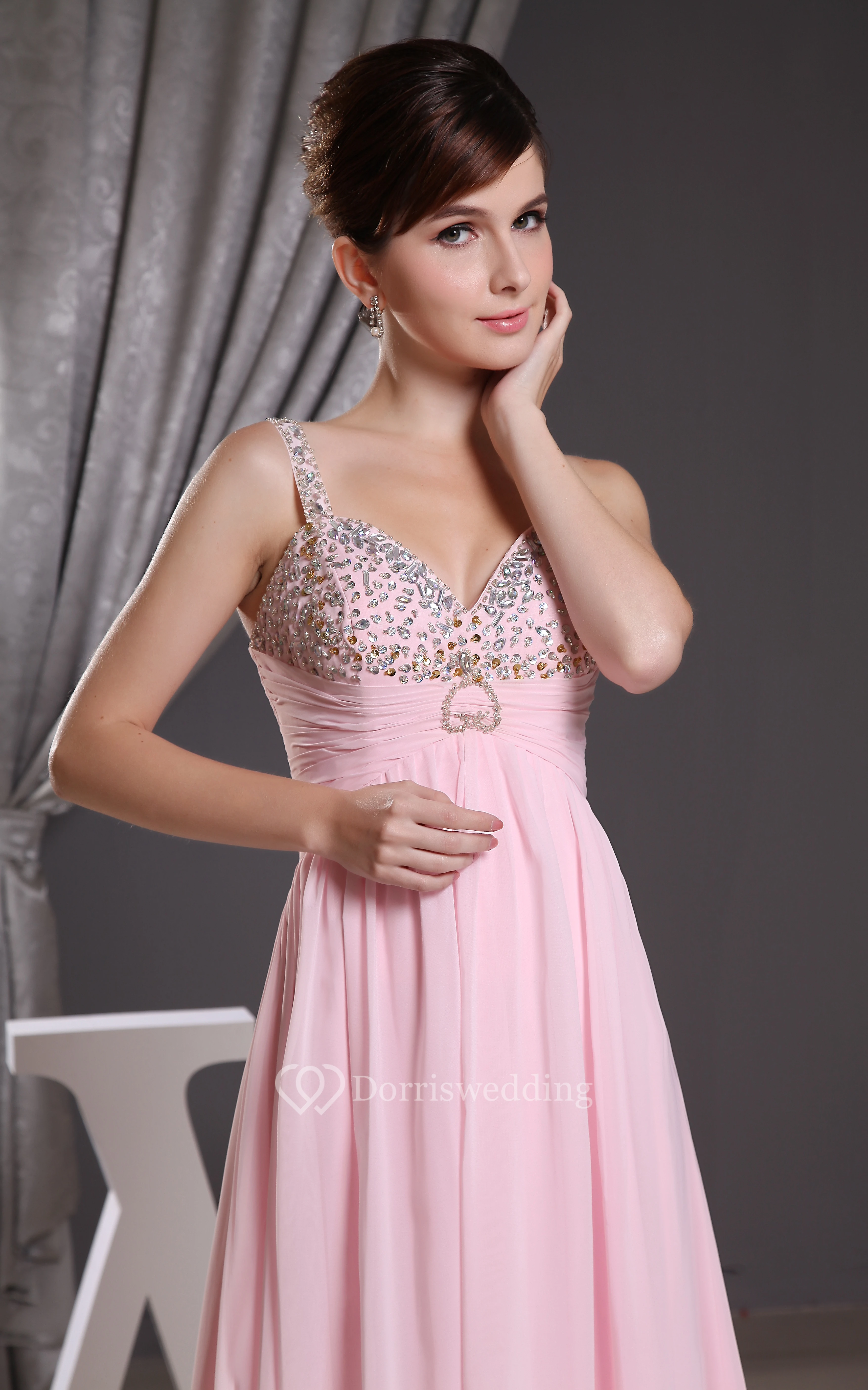 Sleeveless Chiffon Maxi Dress With Ruched Waist and Beading