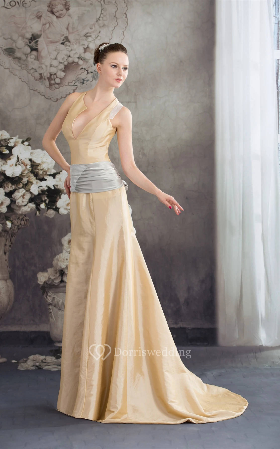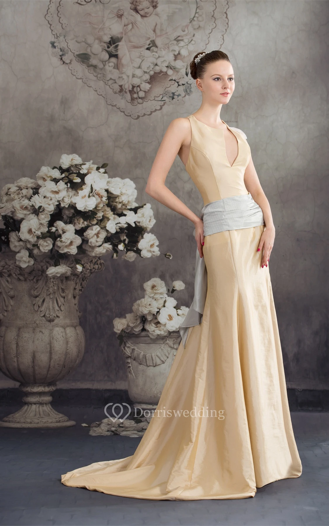 Sleeveless Column Taffeta Dress With Ruched Waist