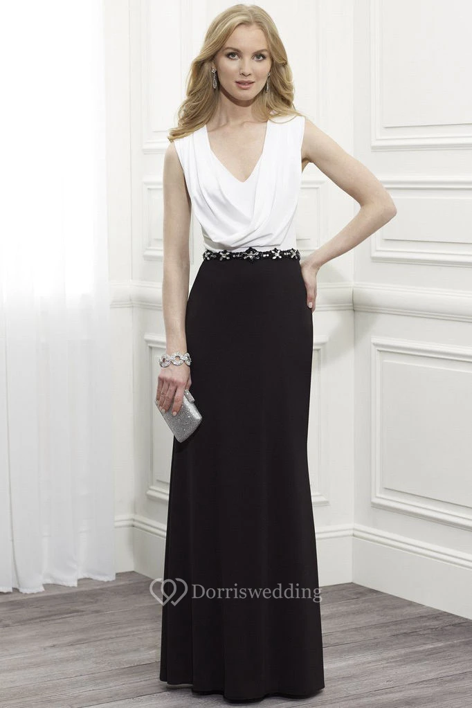 Sleeveless Cowl Neck Jeweled Chiffon Mother Of The Bride Dress