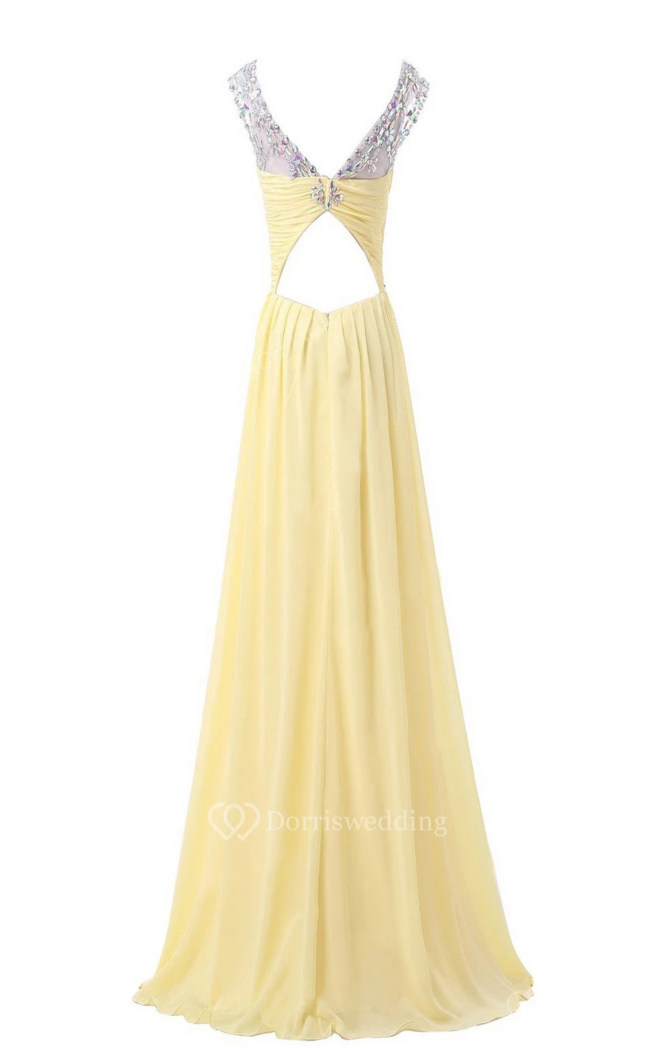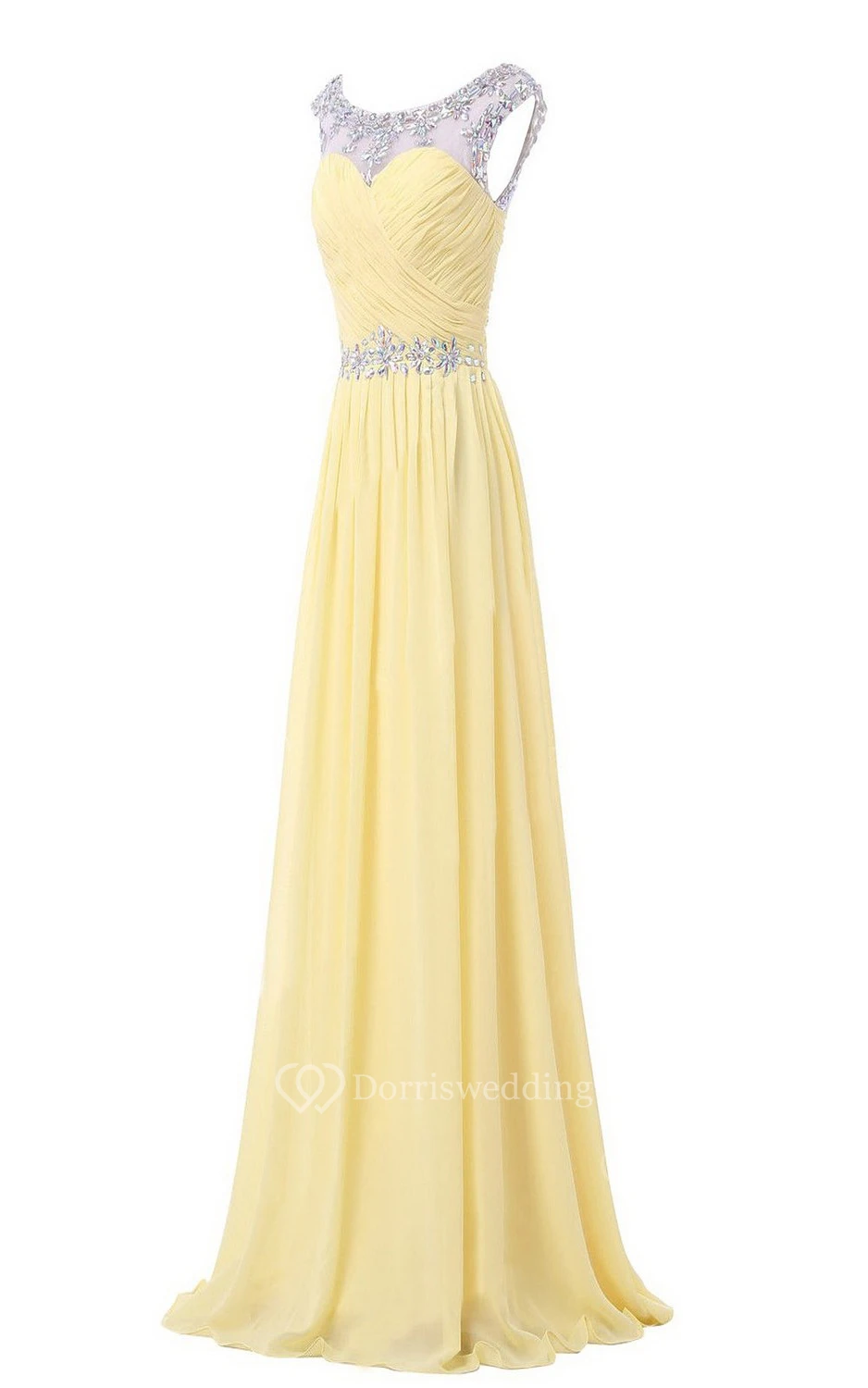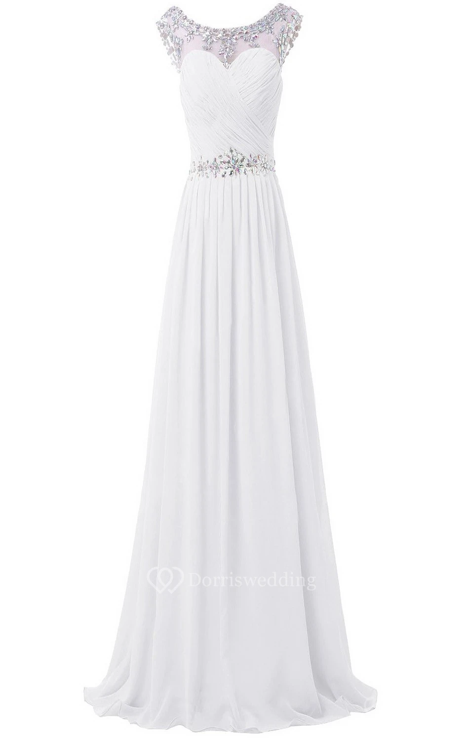 Sleeveless Crystal Stone Appliqued Long Pleated Chiffon Dress