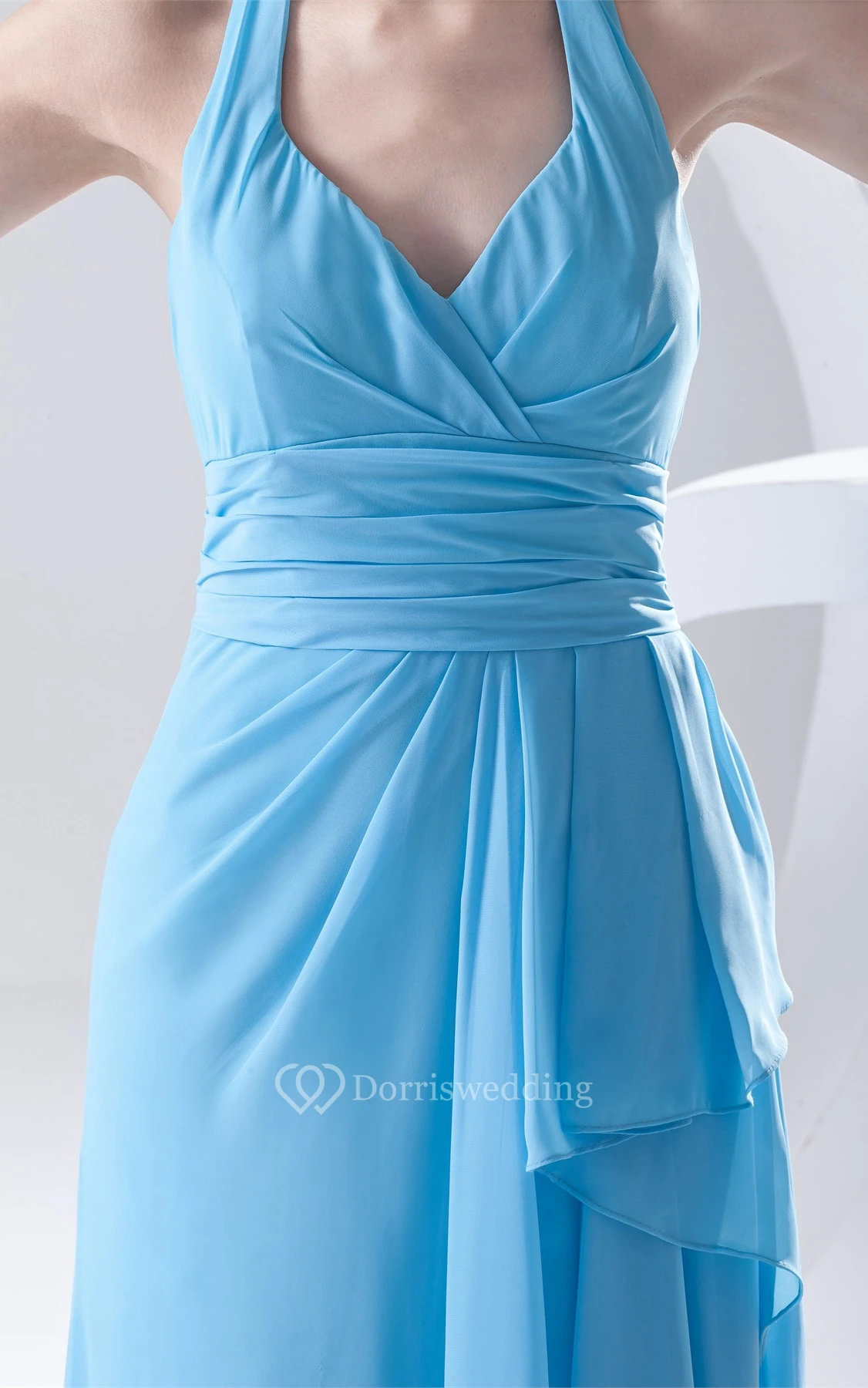 Sleeveless Draped Long Chiffon Dress With Halter
