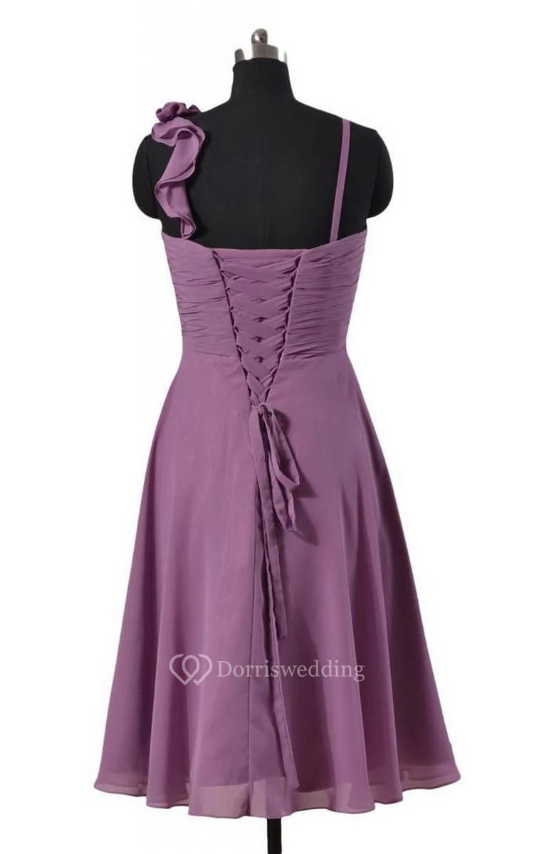 Sleeveless Empire Chiffon Dress With Floral Strap