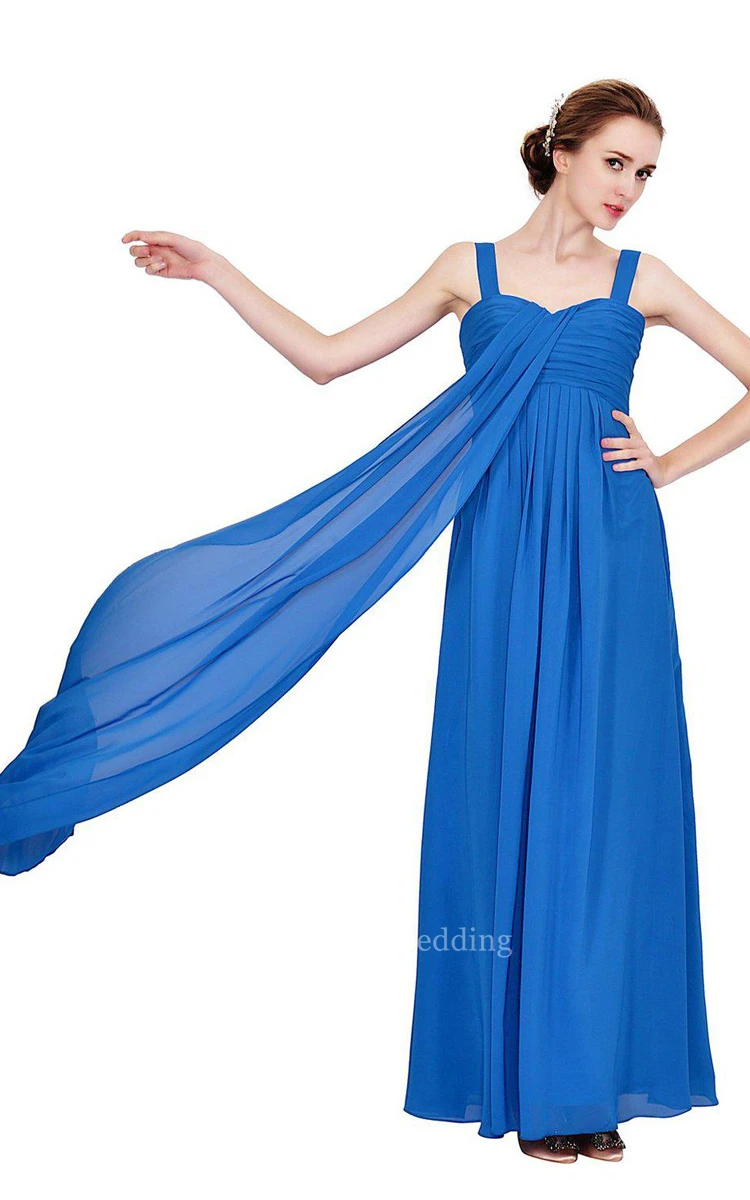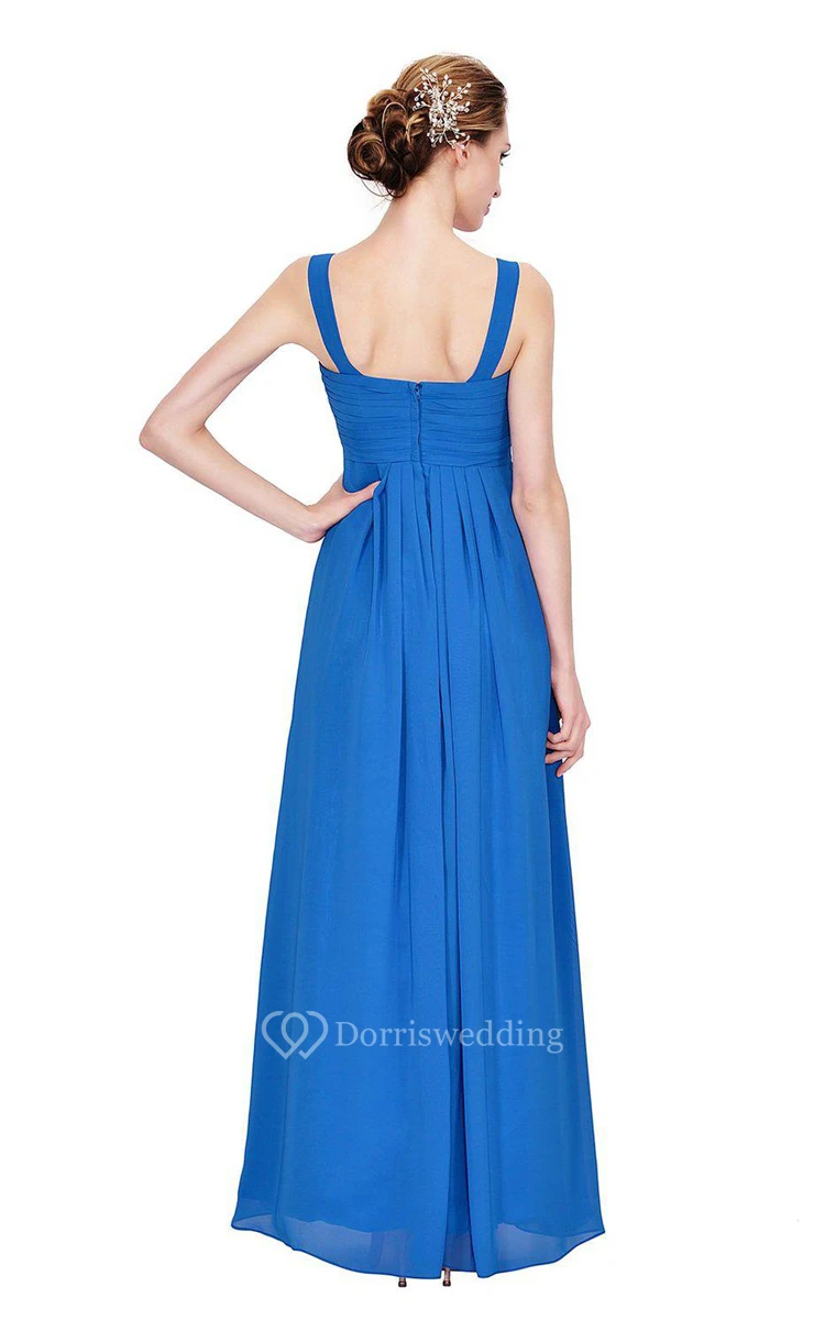 Sleeveless Empire Chiffon Gown With Ruched Bodice