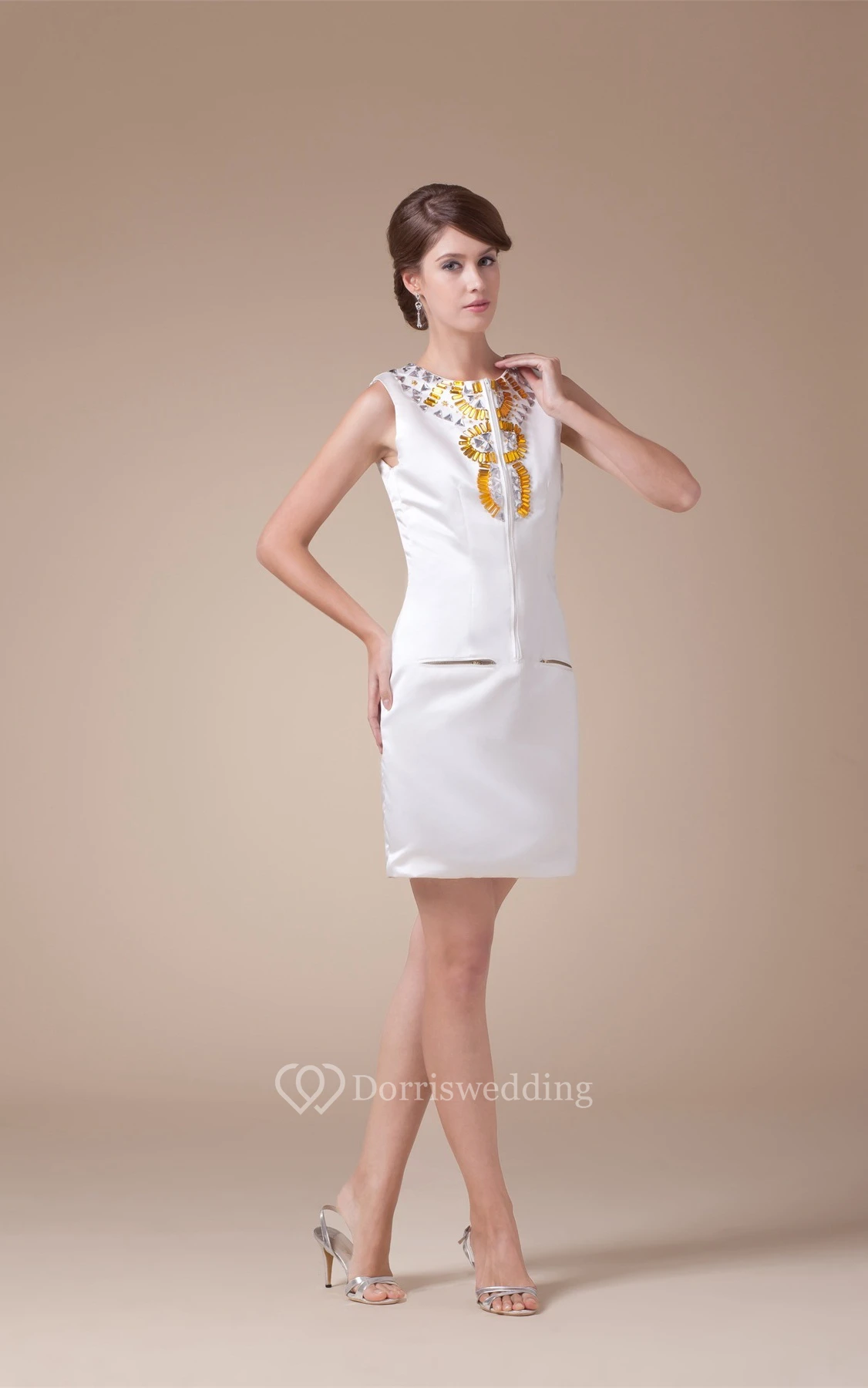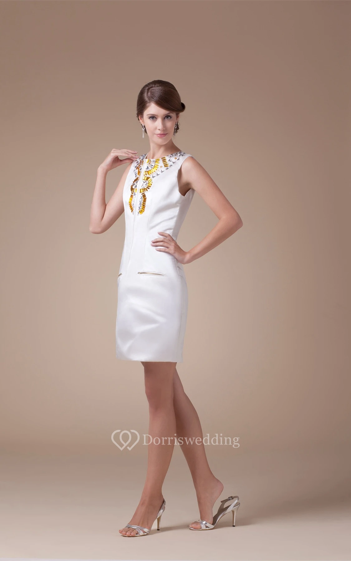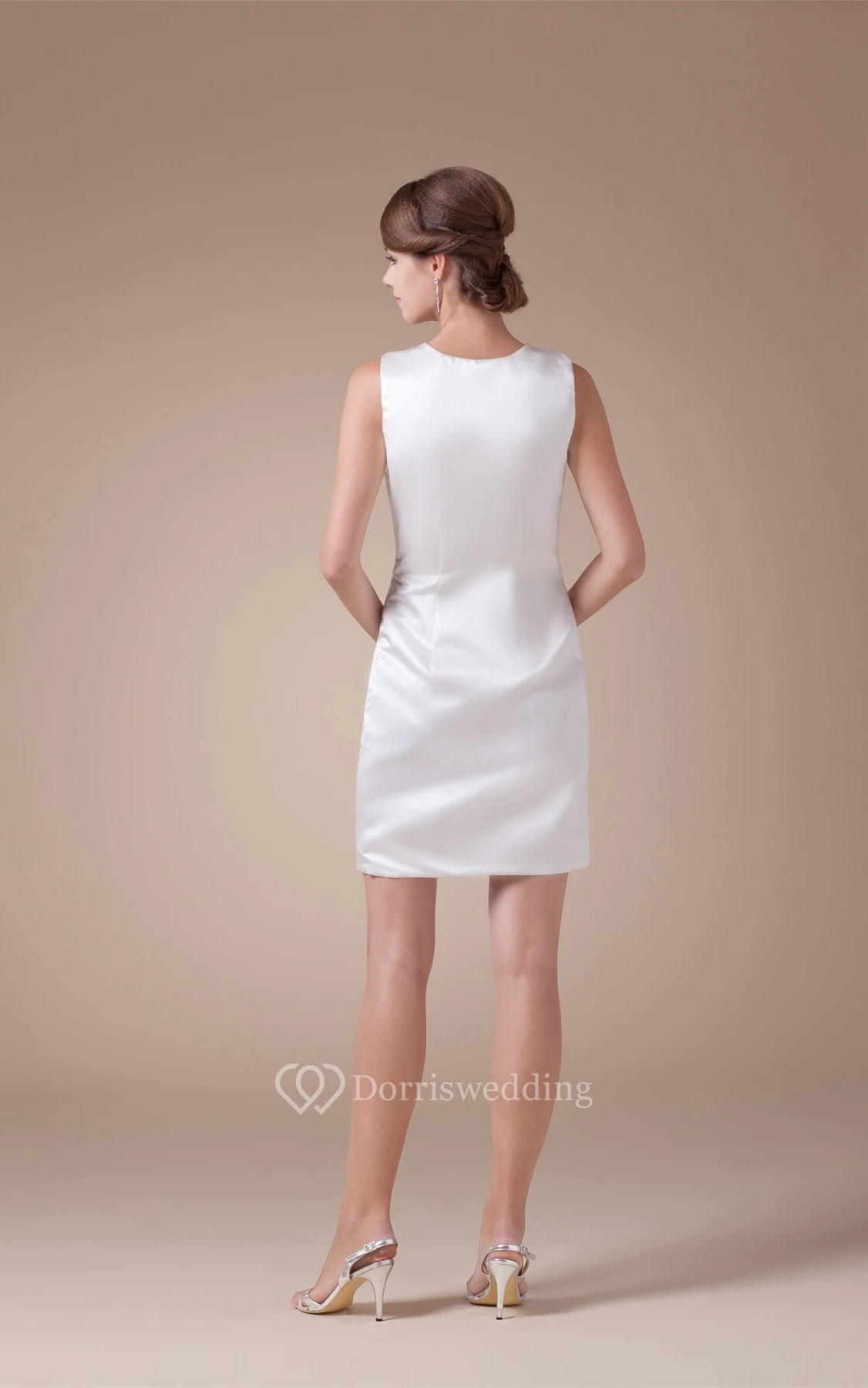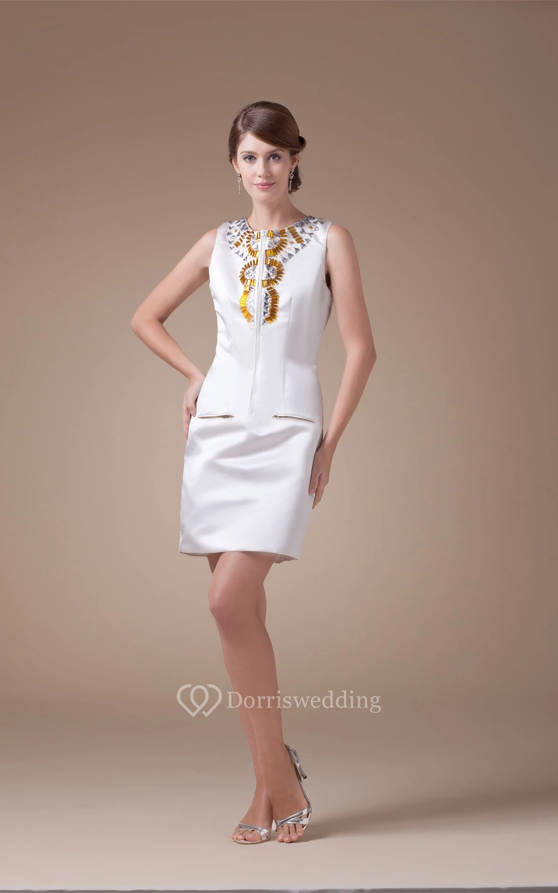 Sleeveless Fitted Satin Zipper and Dress With Rhinestone