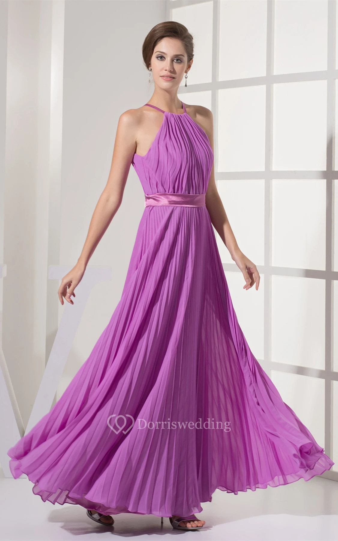 Sleeveless Floor-Length A-Line Dress With Overall Ruched Design