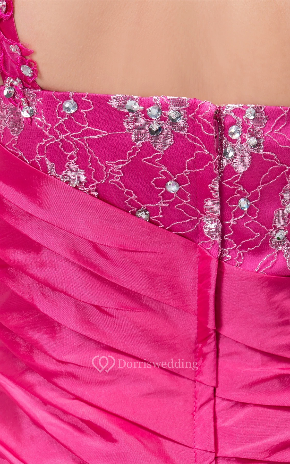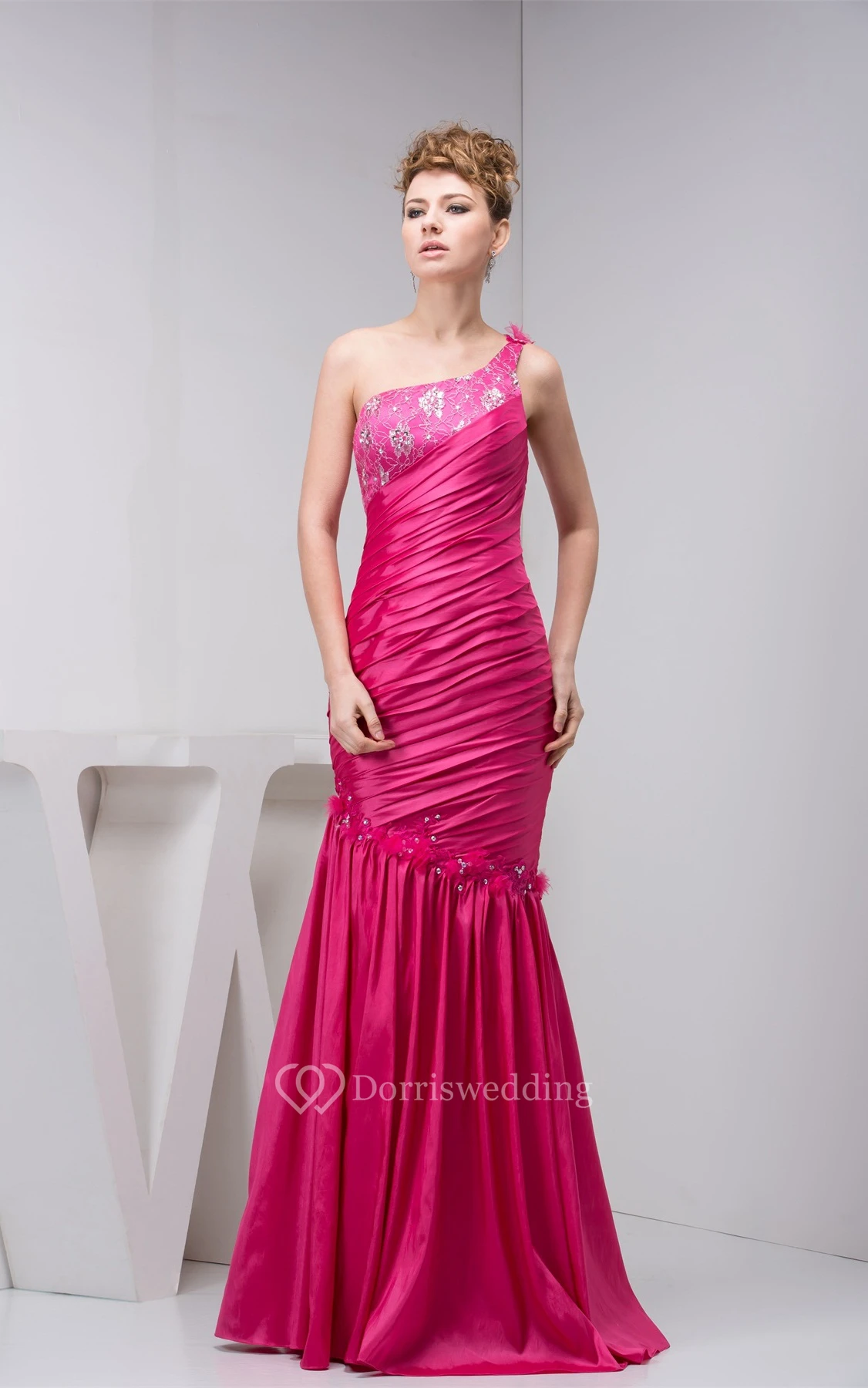 Sleeveless Floor-Length Column Ruched Bodice and Dress With Lace