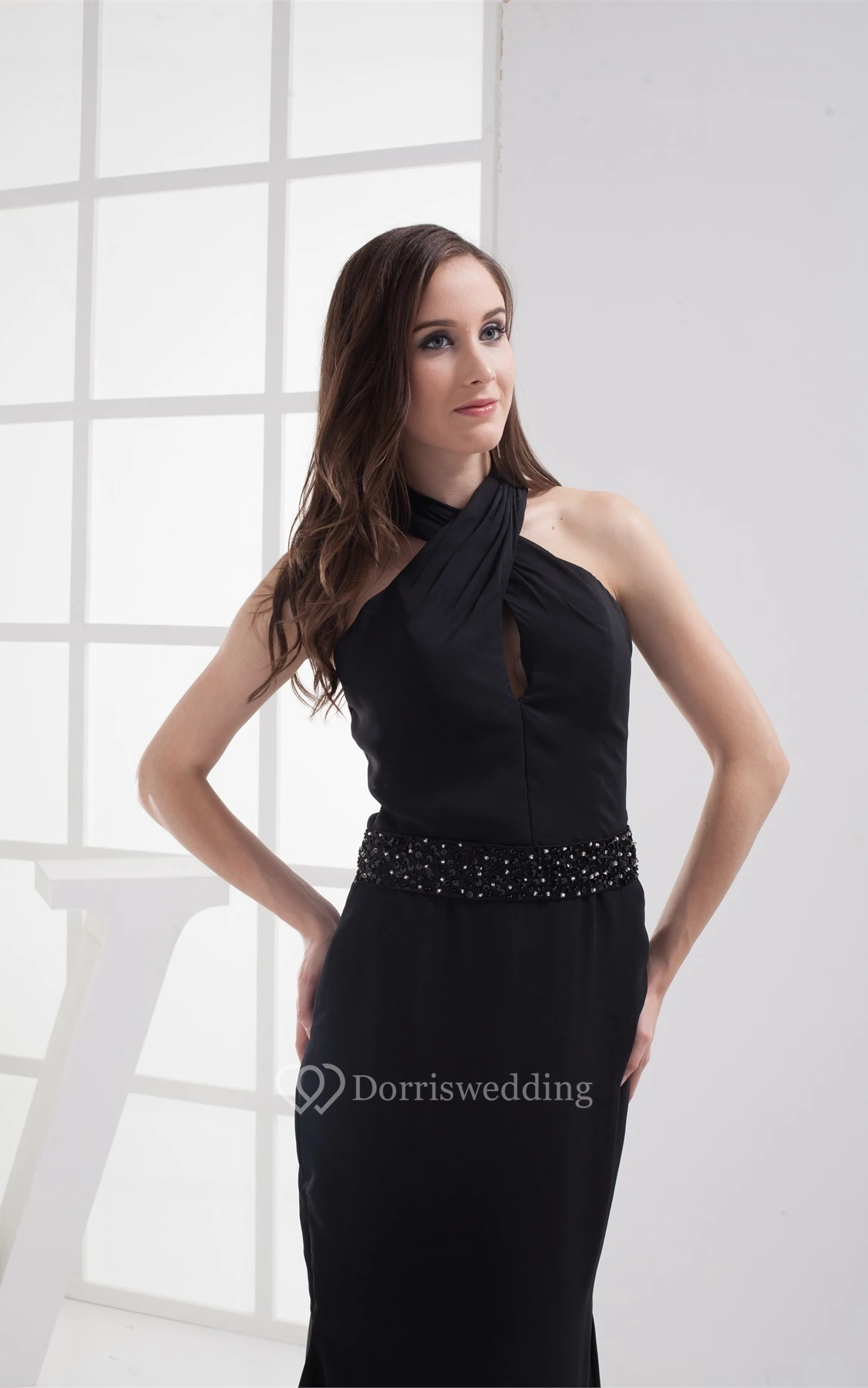 Sleeveless Floor-Length Mermaid Jeweled Waist and Dress With Halter