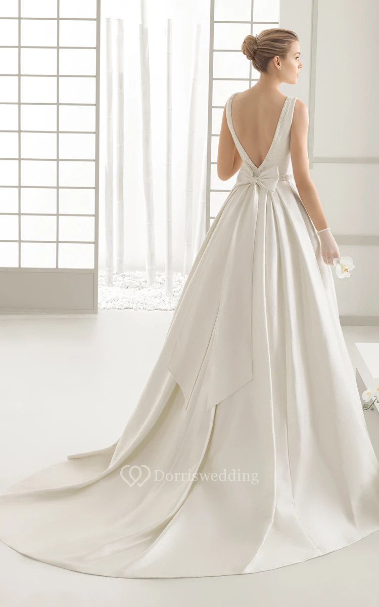 Sleeveless Graceful Gown With Decorative Bow At Back