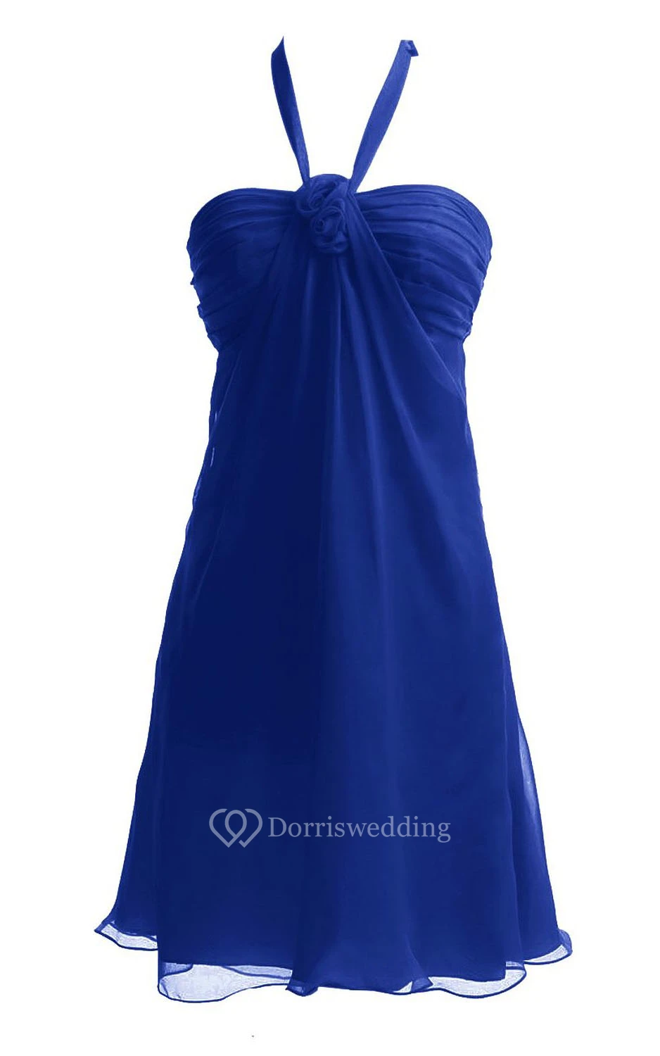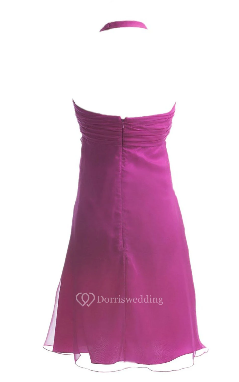 Sleeveless Halter Ruched Bodice Short Chiffon Dress