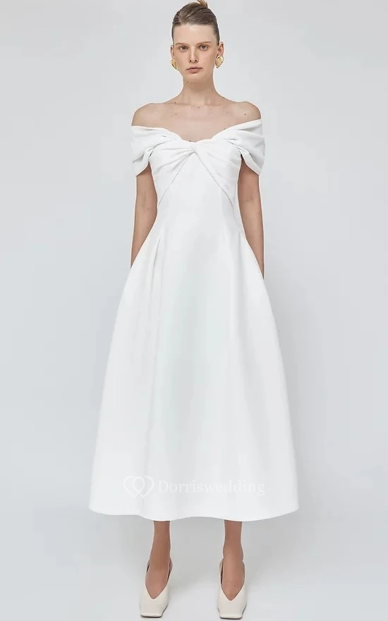 Sleeveless High-end A Line Tea-length Satin Prom Dress