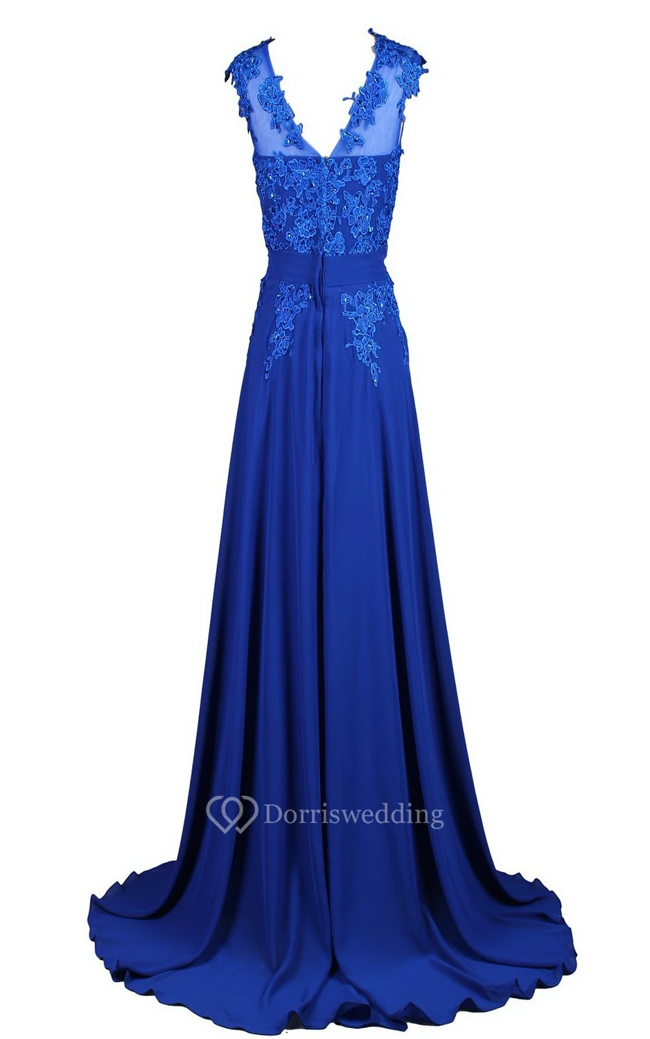Sleeveless High Neck Appliqued Bodice Long Chiffon Dress