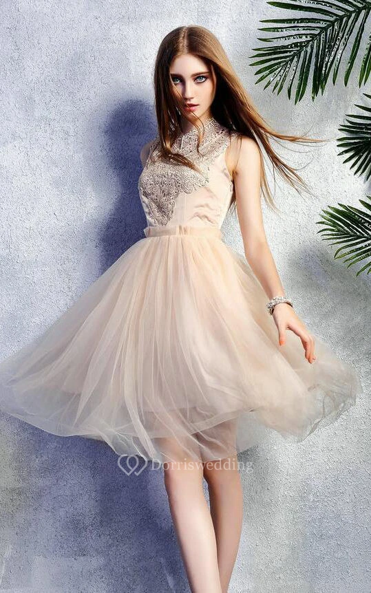 Sleeveless High Neck Lace New Arrival Stunning Dress