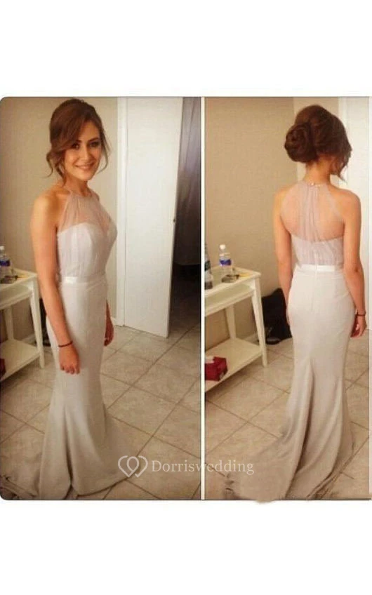 Sleeveless High-neck Long Chiffon Dress with Illusion Style