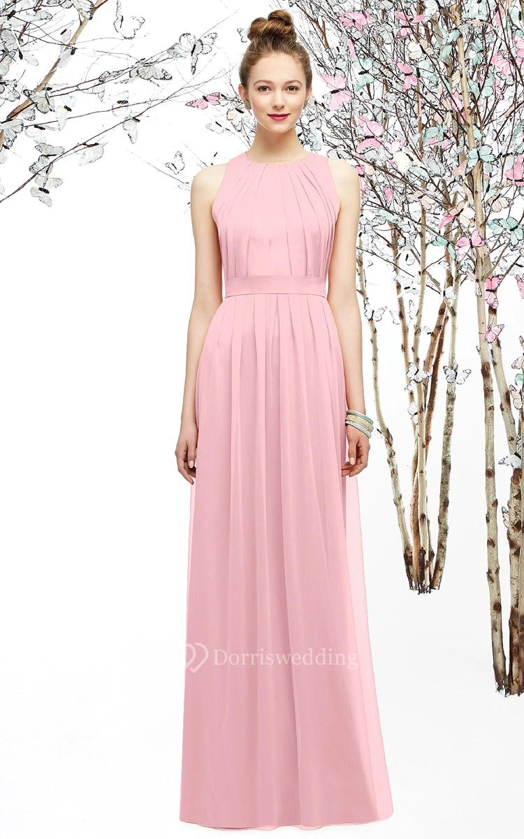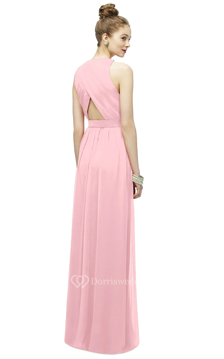 Sleeveless High-Neck Long Dress With Ruching