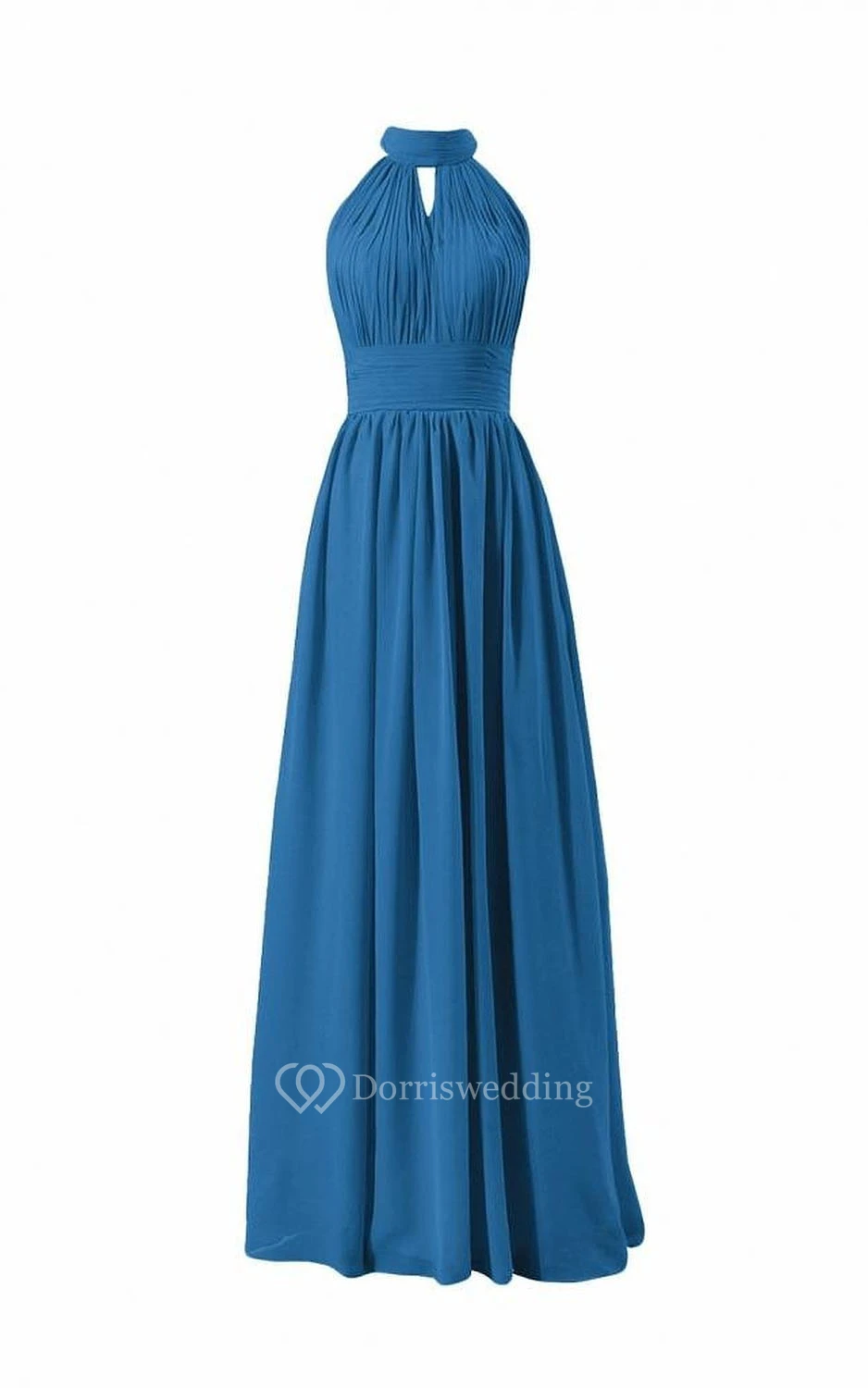 Sleeveless High-neck Long Pleated Chiffon Dress