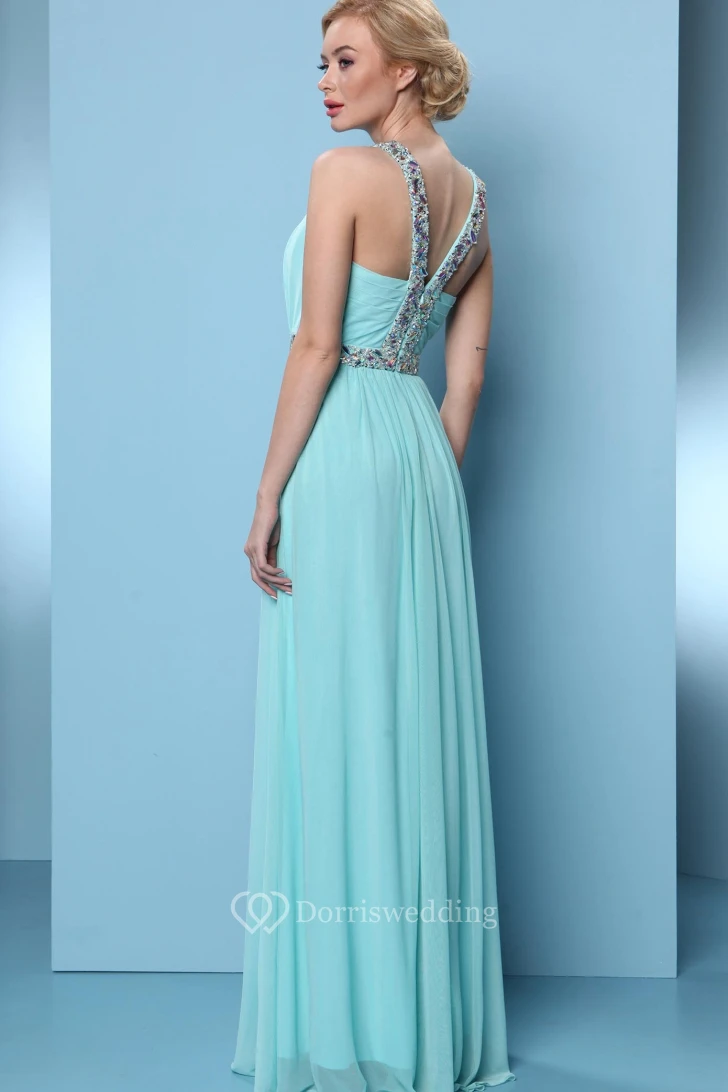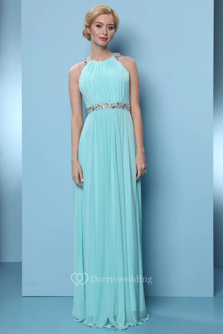 Sleeveless High Neck Pleated Chiffon Bridesmaid Dress