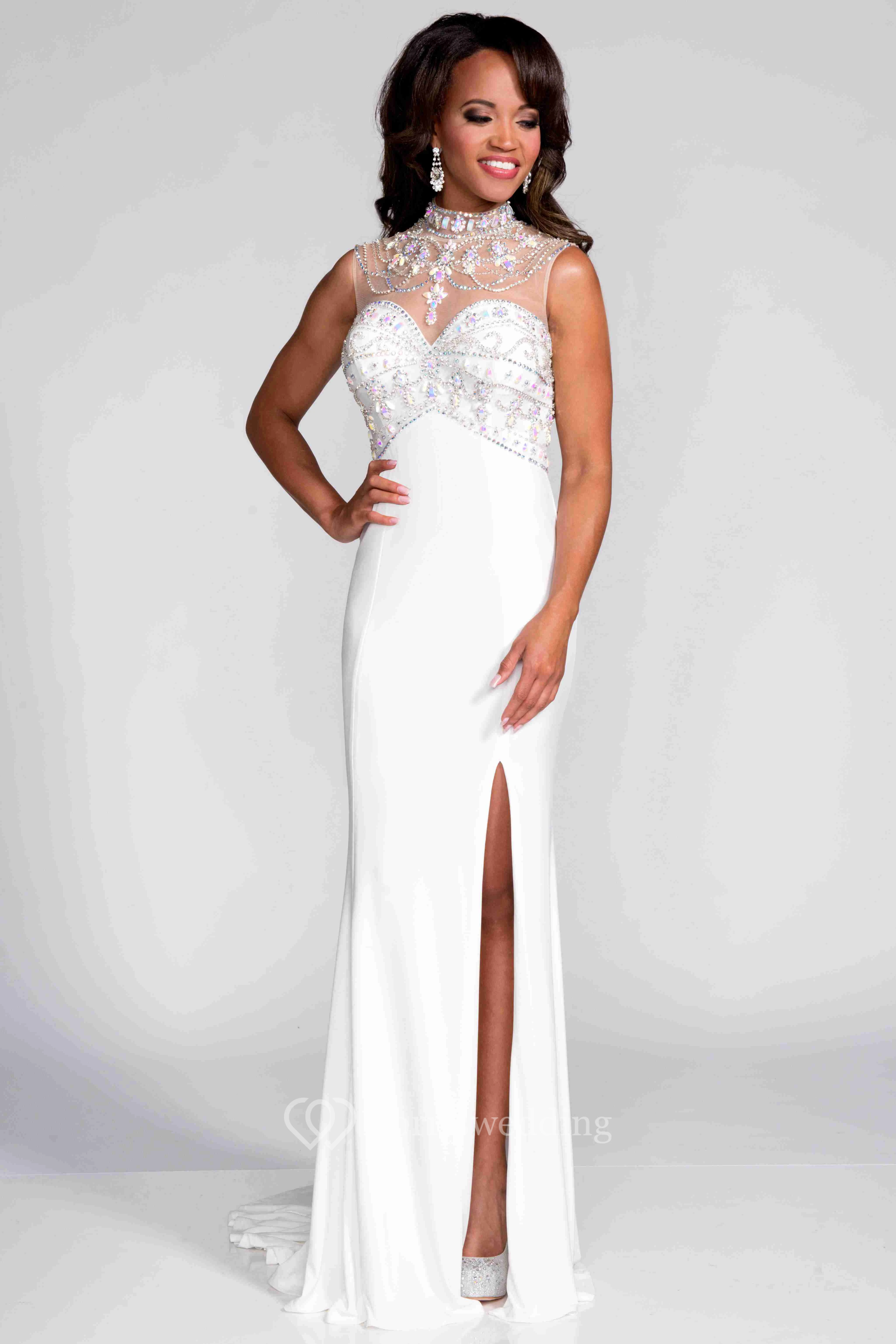 Sleeveless High Neck Sheath Jersey Prom Dress With Illusion Back