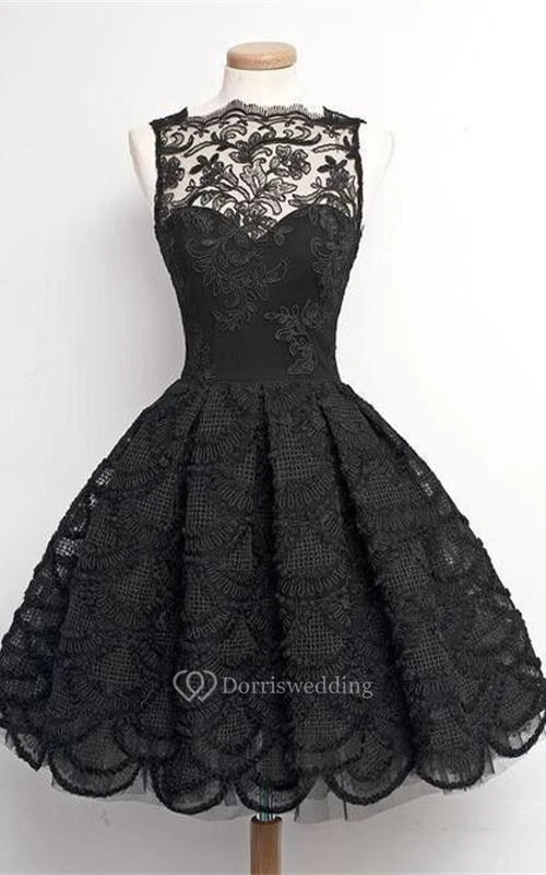 Sleeveless High Neck Short Lace Dress