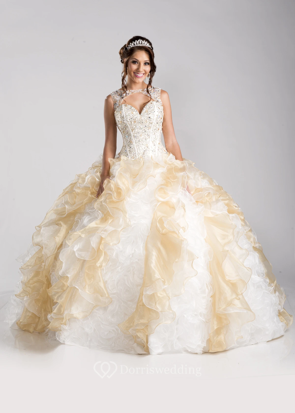 Sleeveless Keyhole Ball Gown With Cascading Ruffles And Lace-Up Back