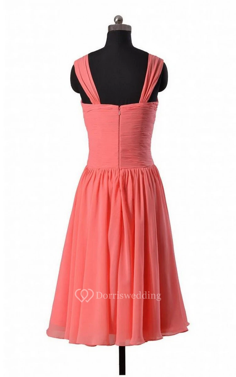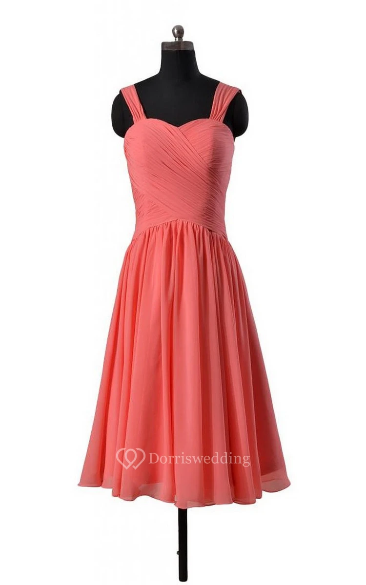 Sleeveless Knee-length Dress With Crisscross Ruching
