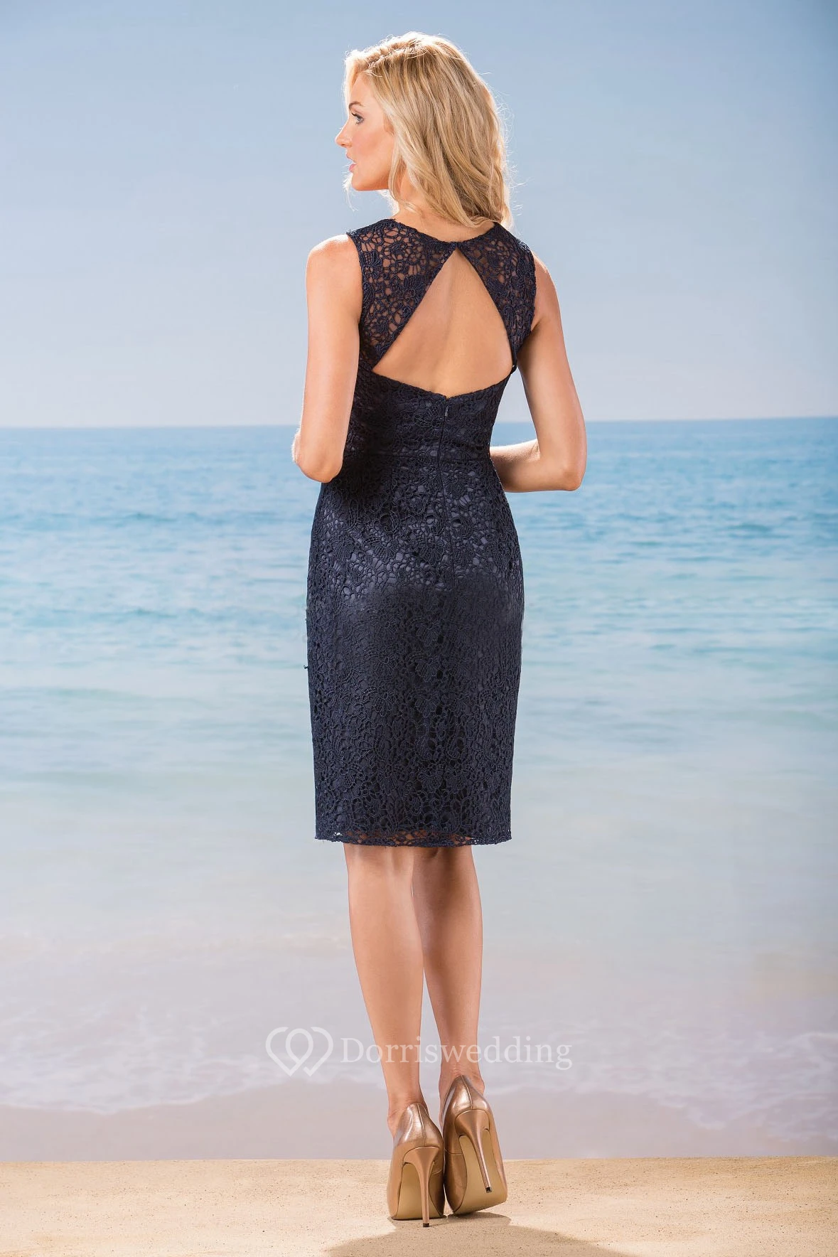 Sleeveless Knee-Length Lace Bridesmaid Dress With Keyhole Back