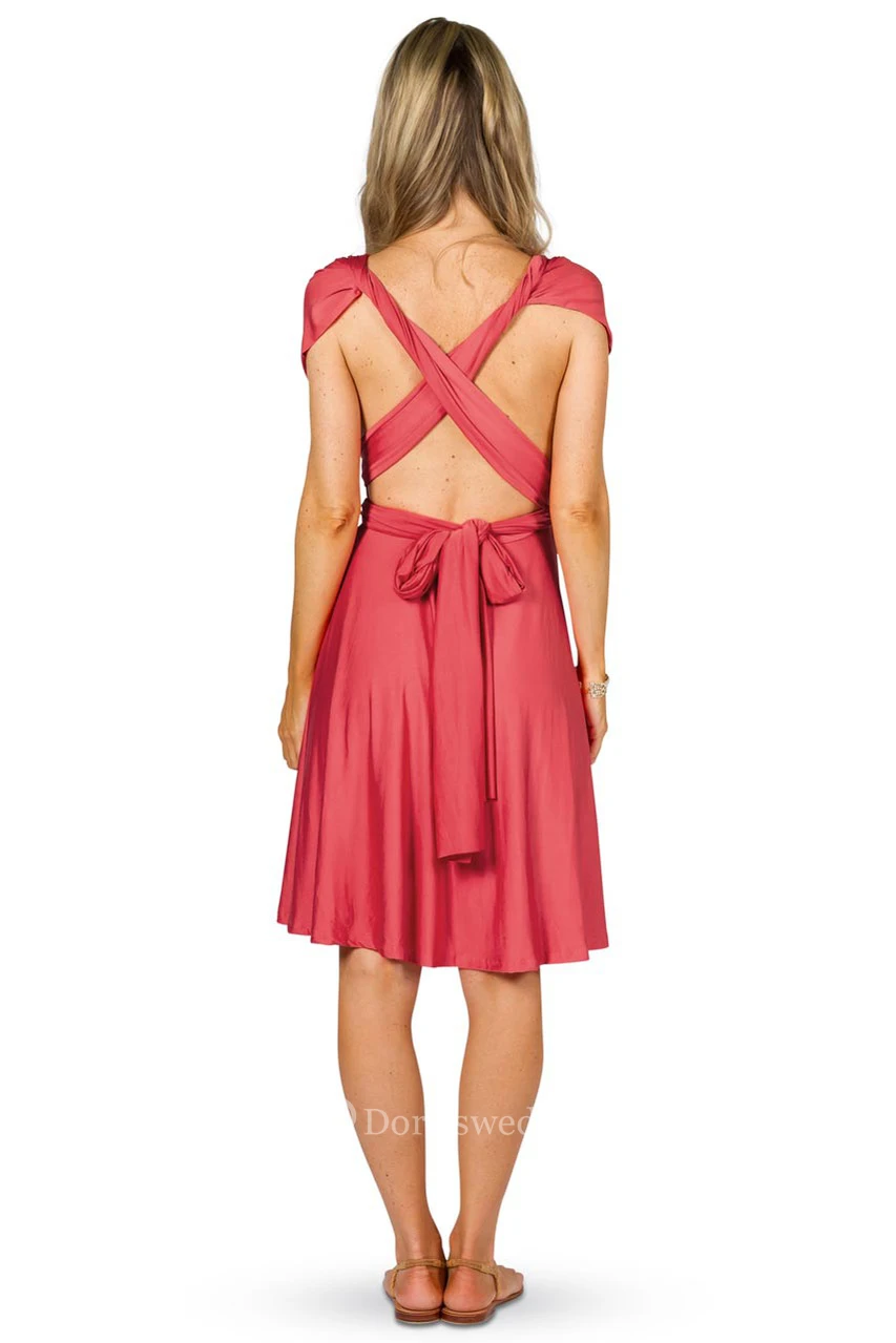 Sleeveless Knee-Length V-Neck Chiffon Convertible Bridesmaid Dress With Ruching And Straps