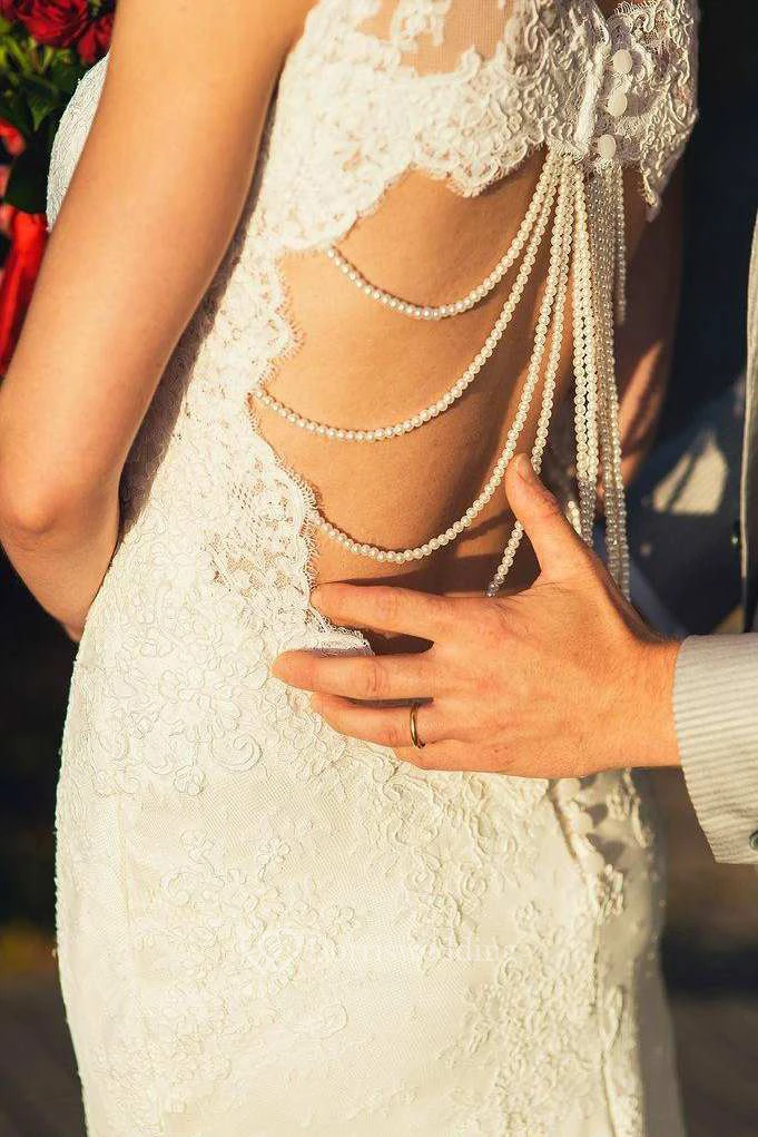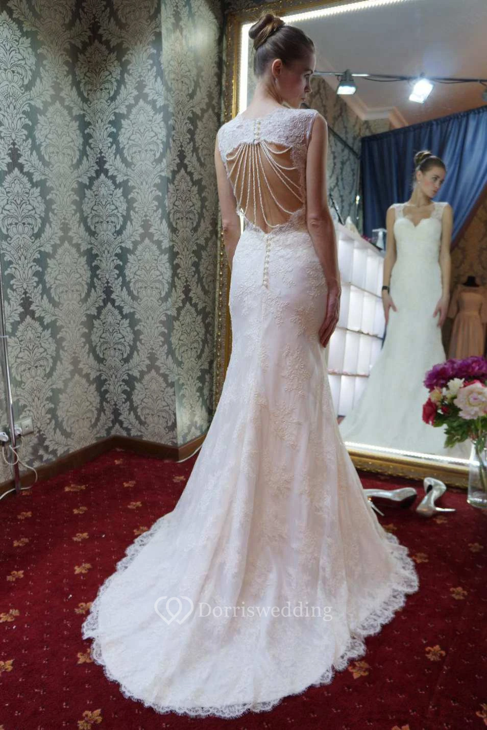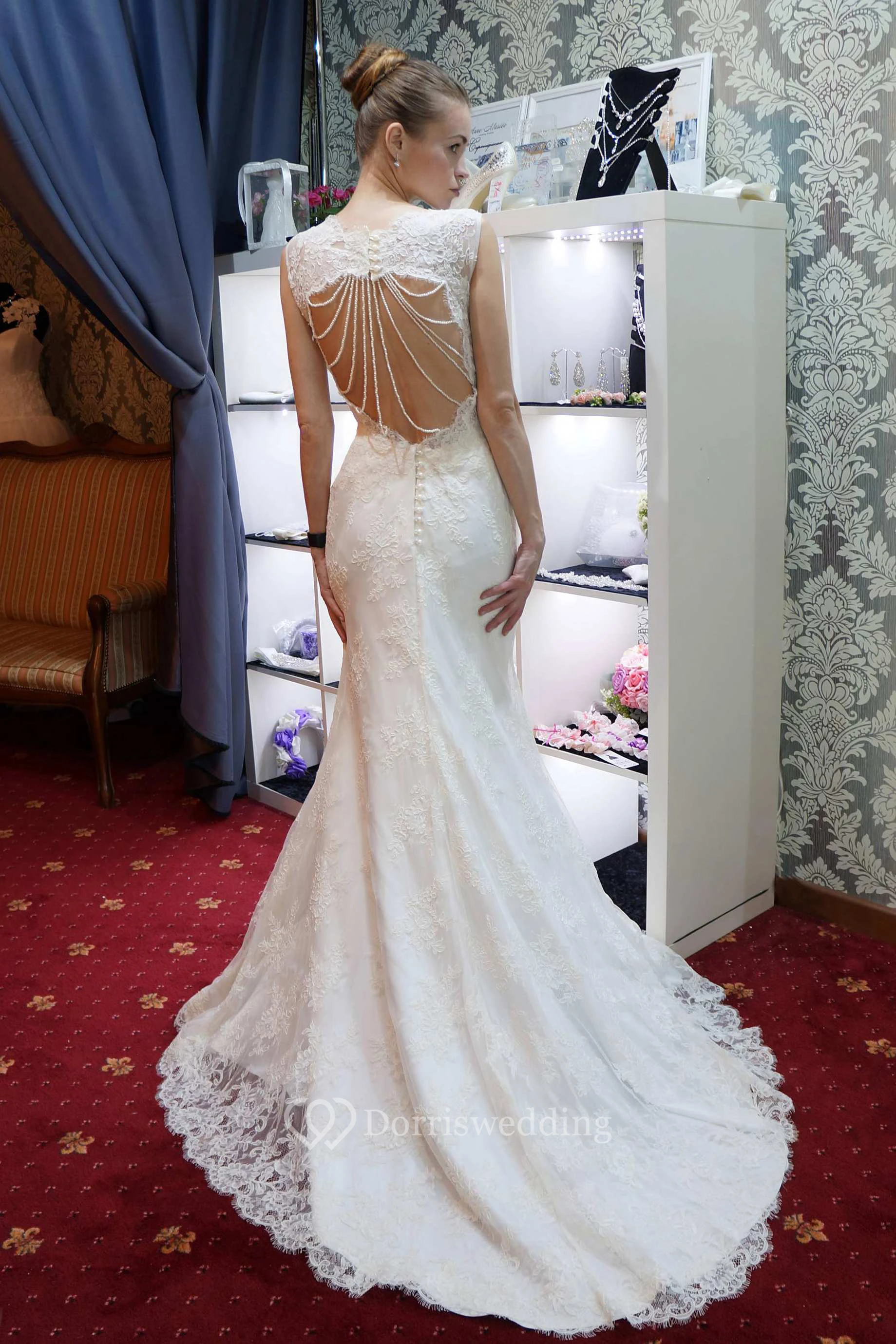Sleeveless Lace A-Line Mermaid Wedding Dress With Beaded Keyhole Back