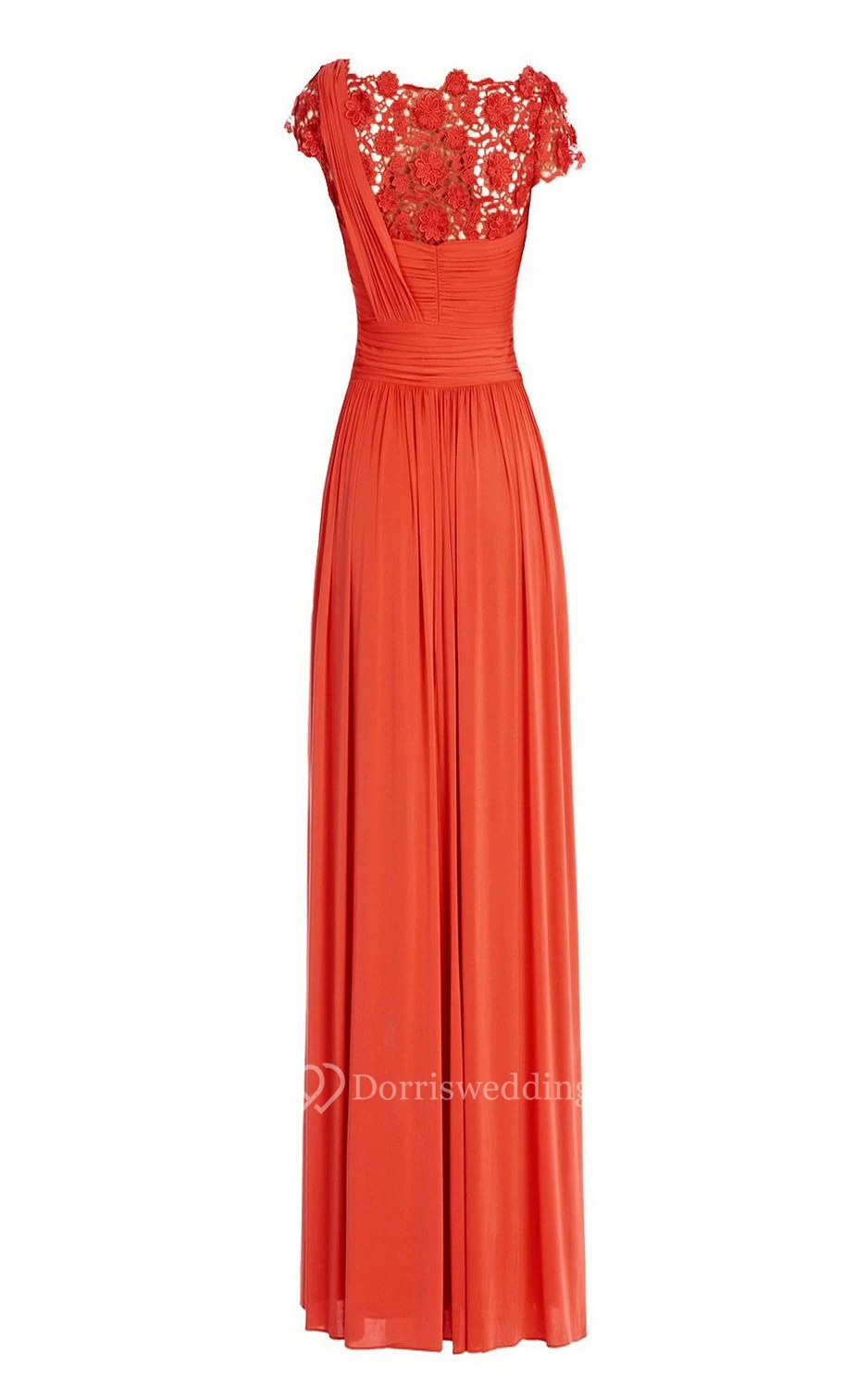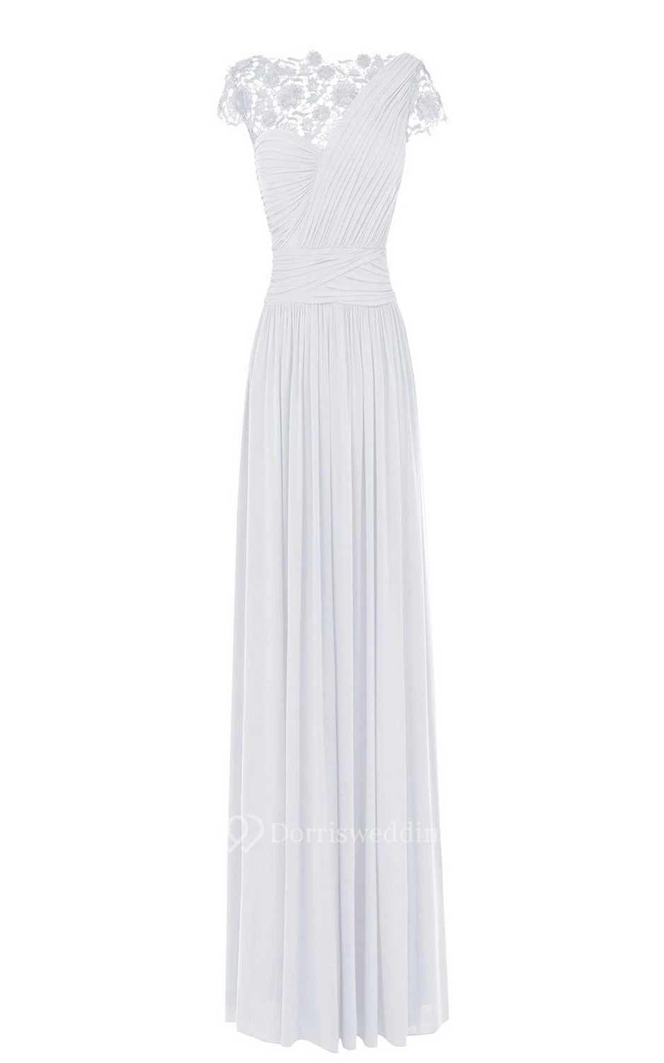 Sleeveless Lace Bateau Ruched Long Pleated Chiffon Dress